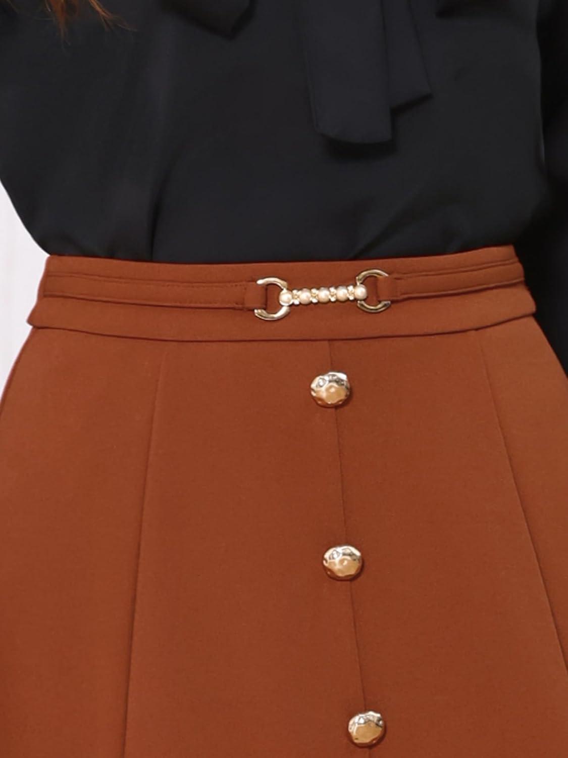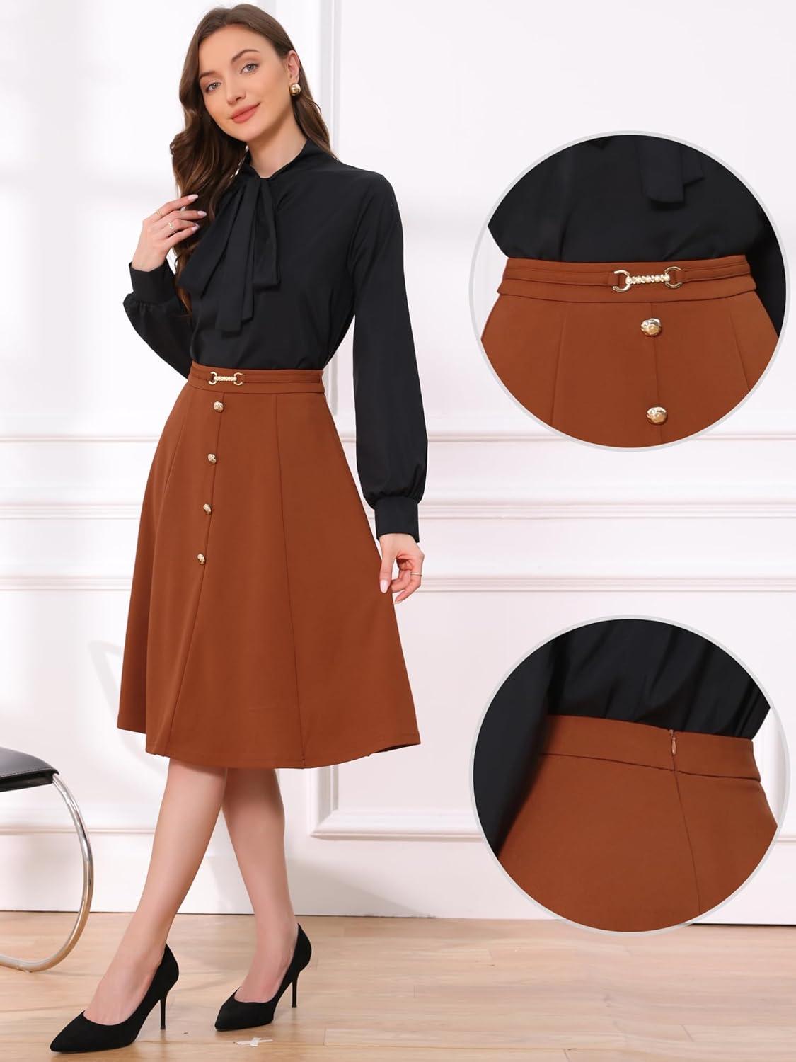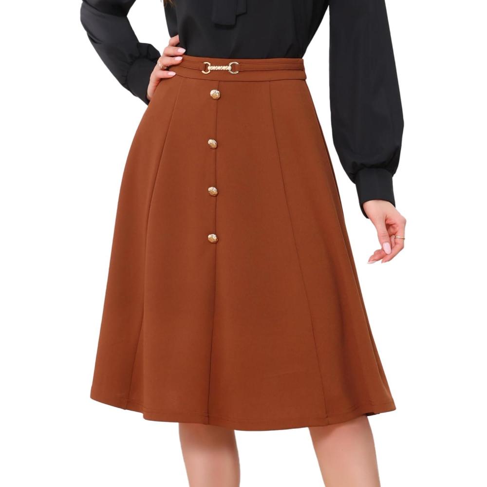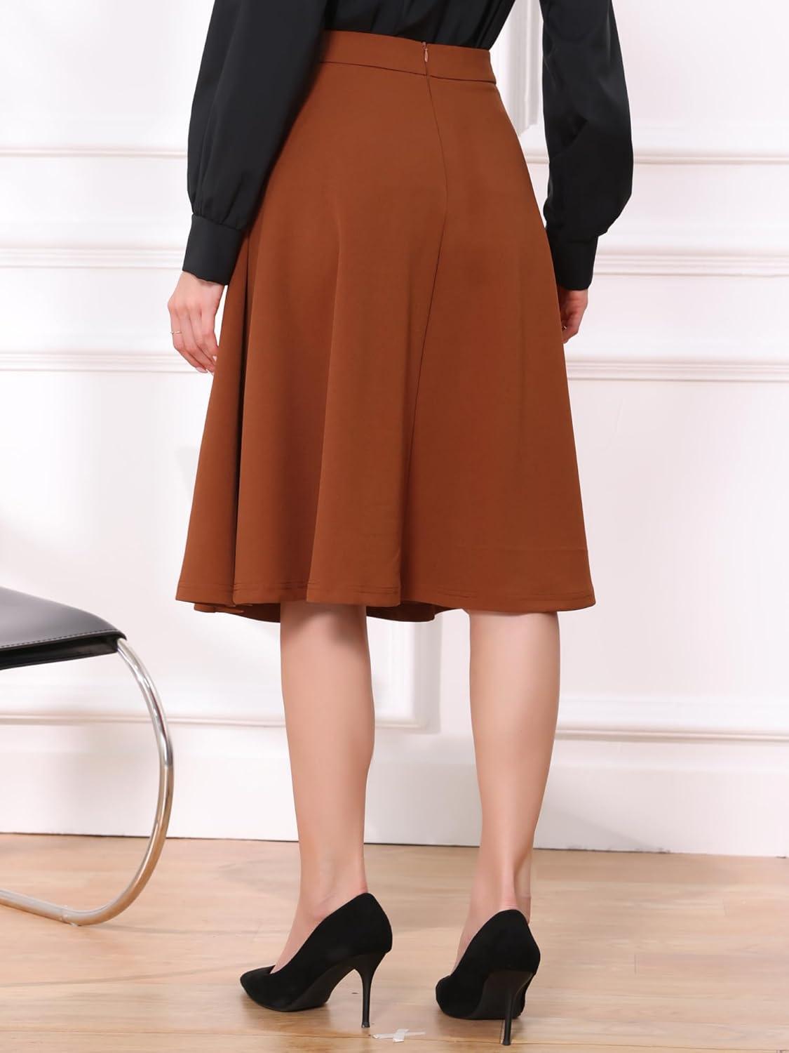 Allegra K A-Line Midi Pleated Skirt for Women’s Vintage Work High Waist Flare Business Skirts(Orange Brown)