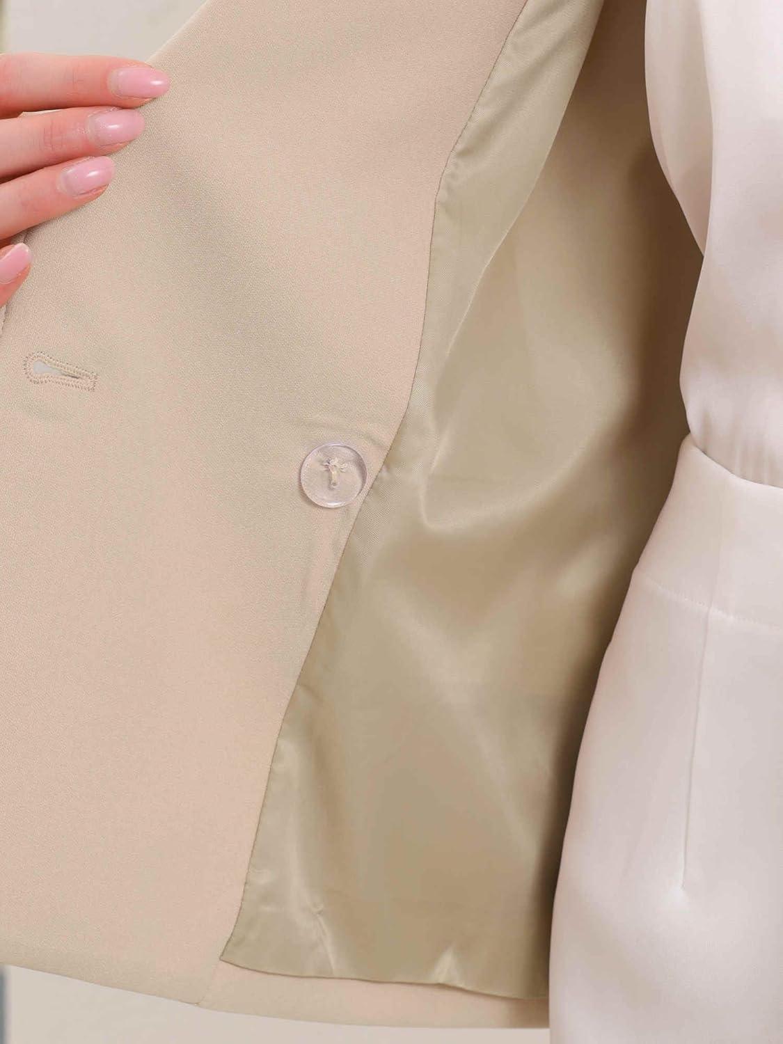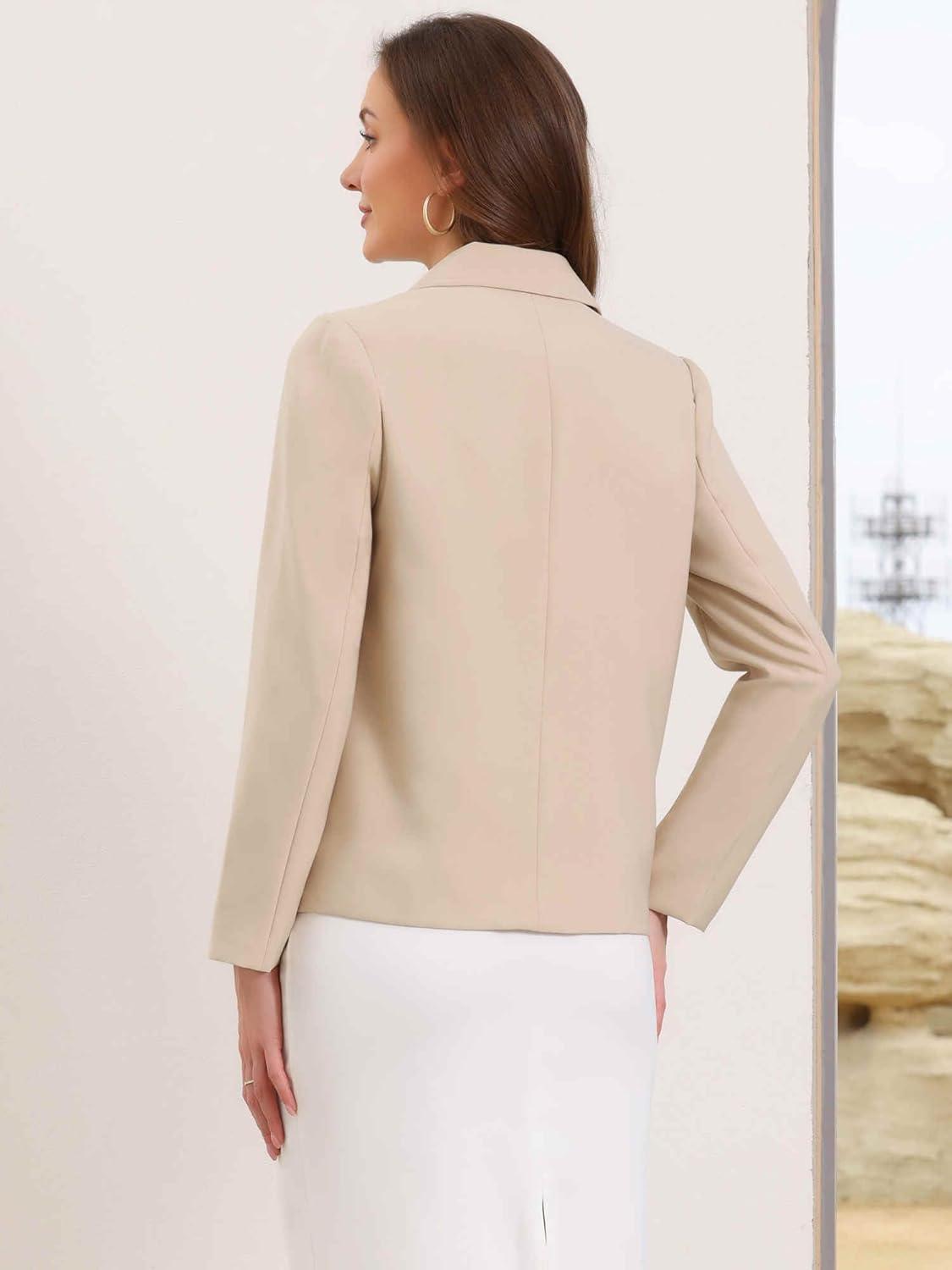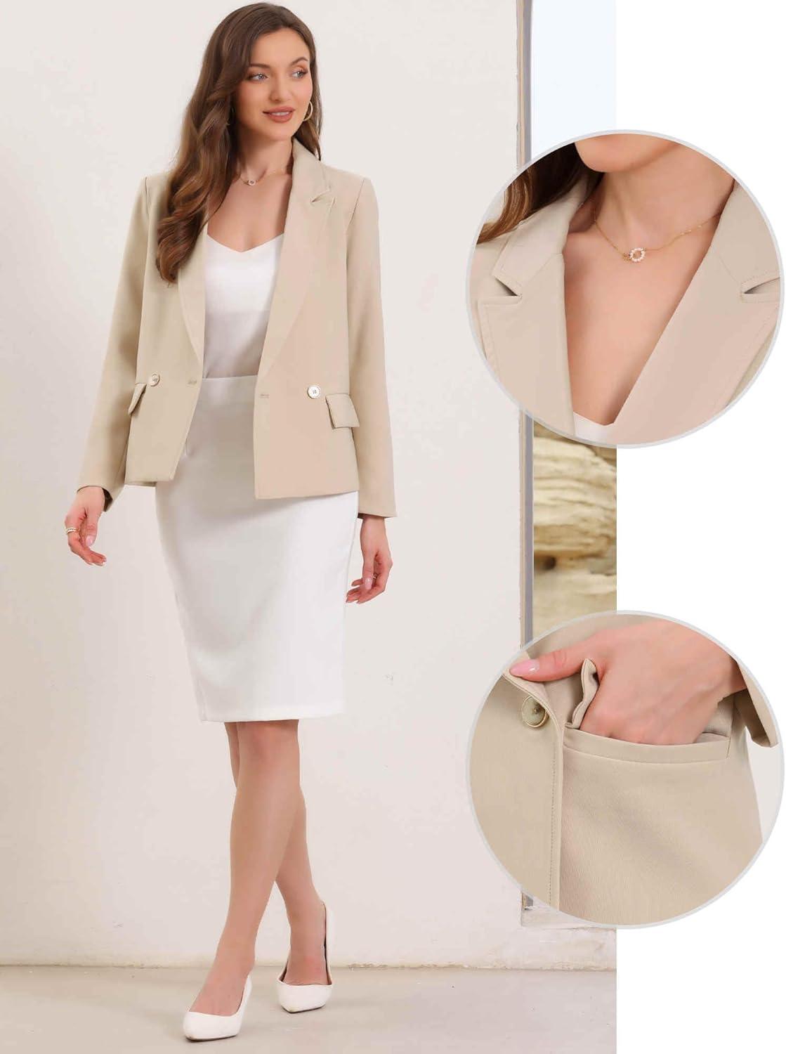 Allegra K Blazers for Women's Business Casual Double Breasted Long Sleeve Work Jacket Office Suit(Beige)