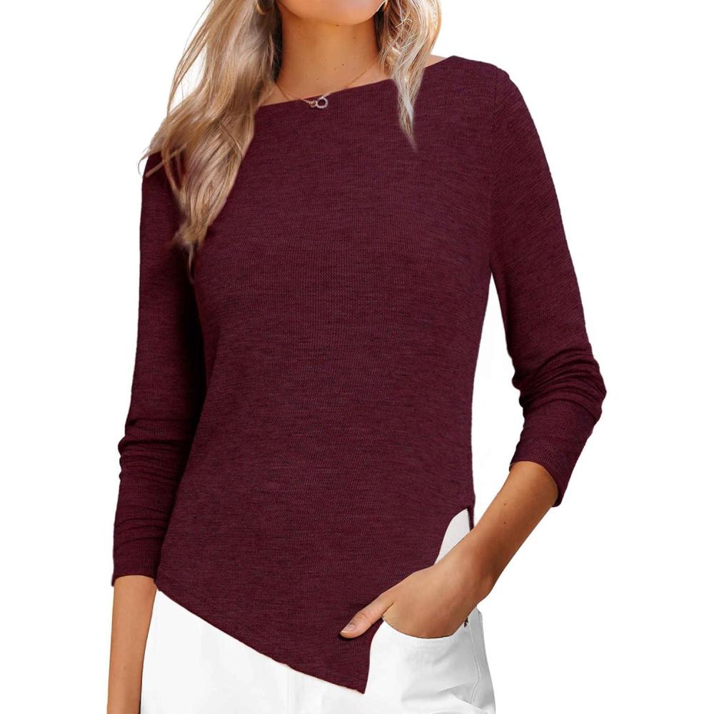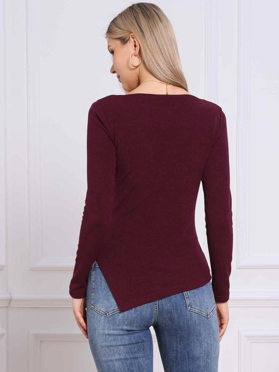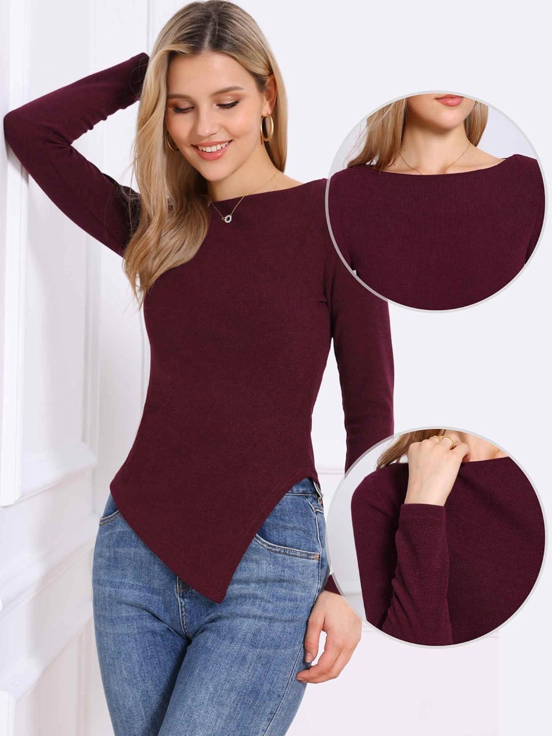 Allegra K Boat Neck Sweater for Women’s Fall High Low Winter Top(Red)