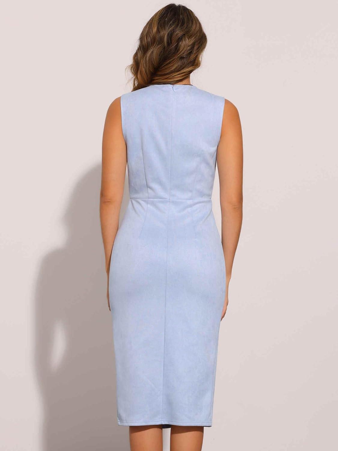 Allegra K Faux Suede Dresses for Women's Sleeveless Crewneck Split Hem Work Office Sheath Dress(Light Blue)