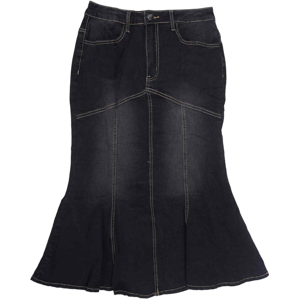 Allegra K Fishtail Denim Skirt for Women Casual Washed High Waisted Midi Jean Skirts(Black)