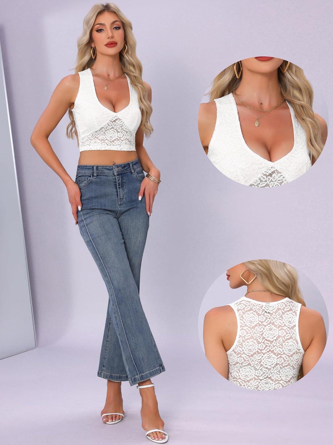 Allegra K Lace Tank Camisole Top for Women's V Neck Y2K Crop Tops(White)