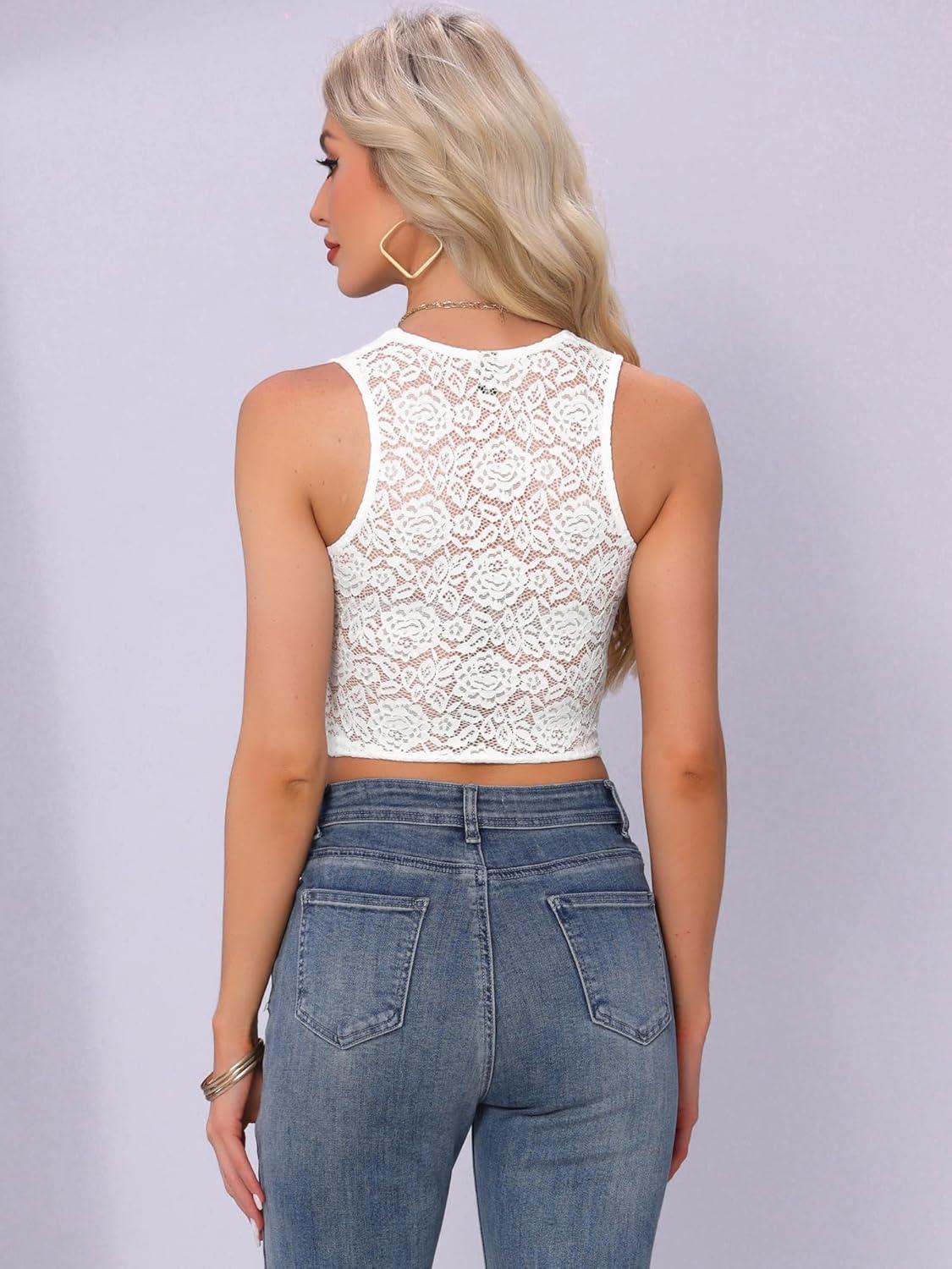 imageAllegra K Lace Tank Camisole Top for Womens V Neck Y2K Crop TopsWhite