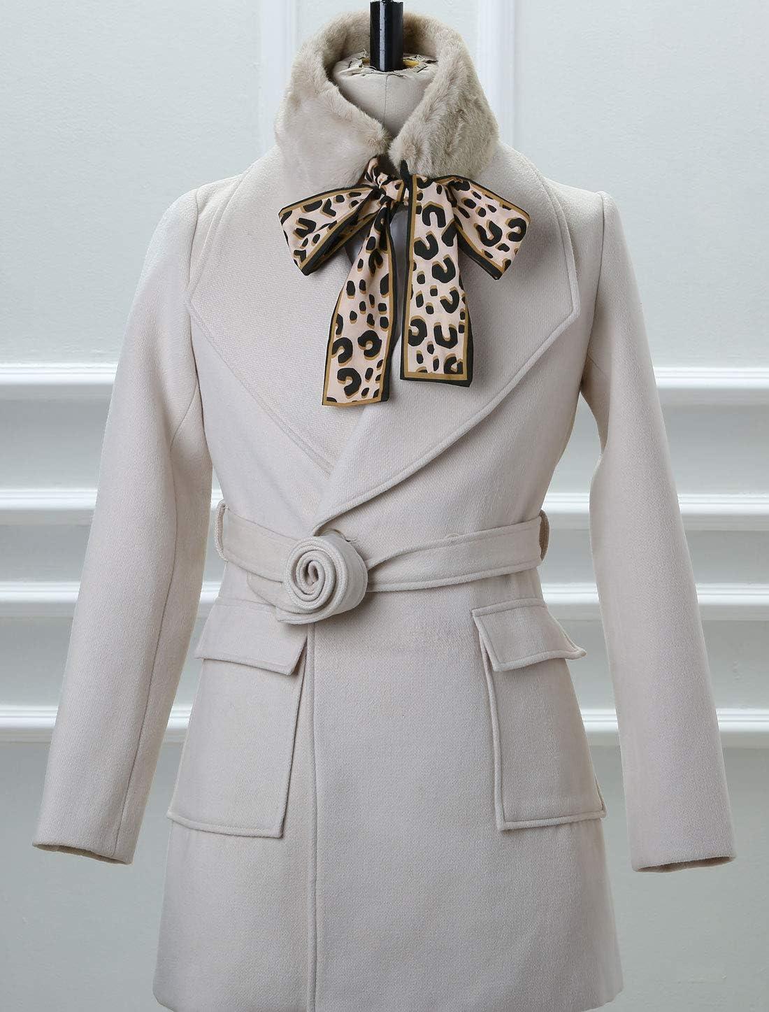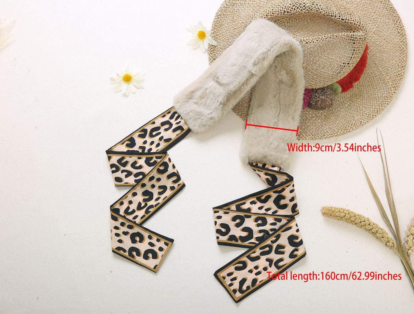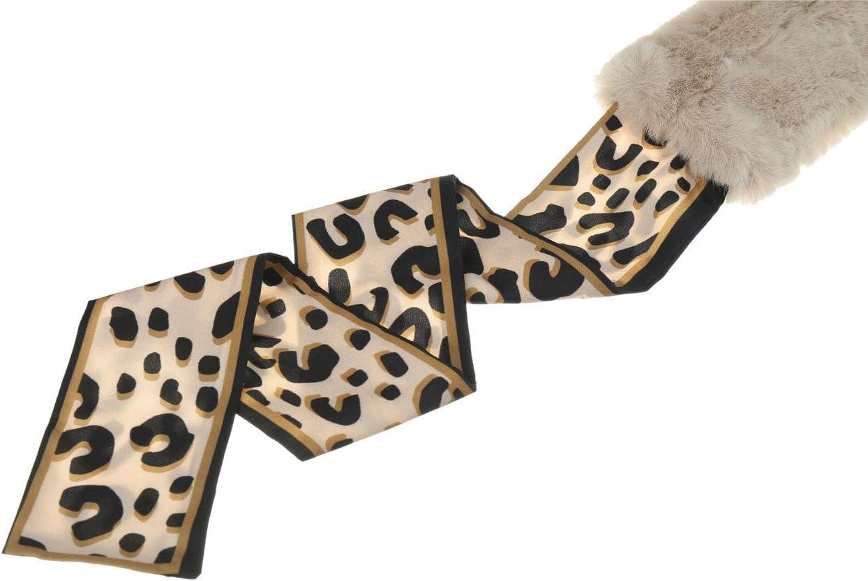 Allegra K Leopard Ribbons Faux Fur Winter Wrap Collar Scarf Plush Neck Scarves Warmer for Women(Apricot)