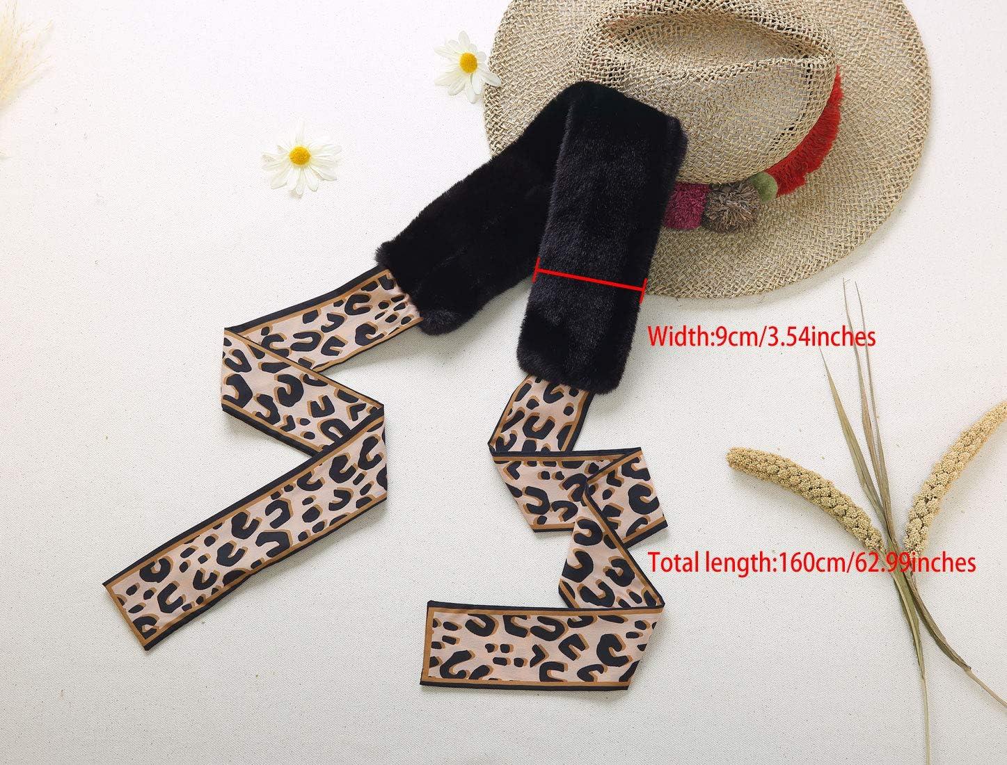 Allegra K Leopard Ribbons Faux Fur Winter Wrap Collar Scarf Plush Neck Scarves Warmer for Women(Black)