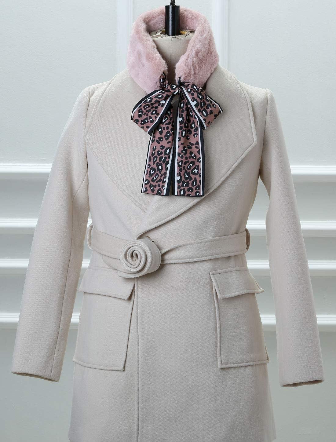 Allegra K Leopard Ribbons Faux Fur Winter Wrap Collar Scarf Plush Neck Scarves Warmer for Women