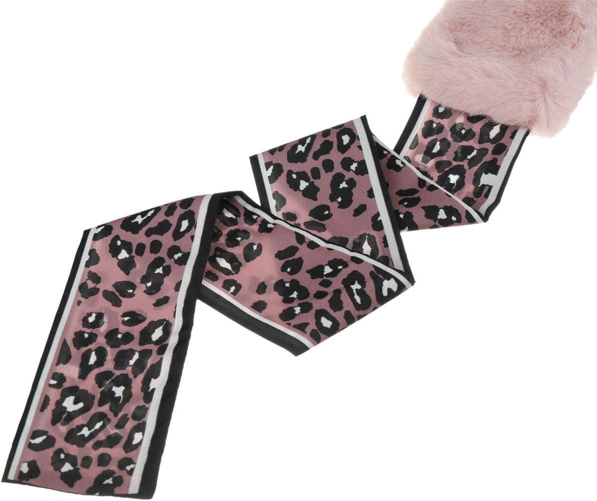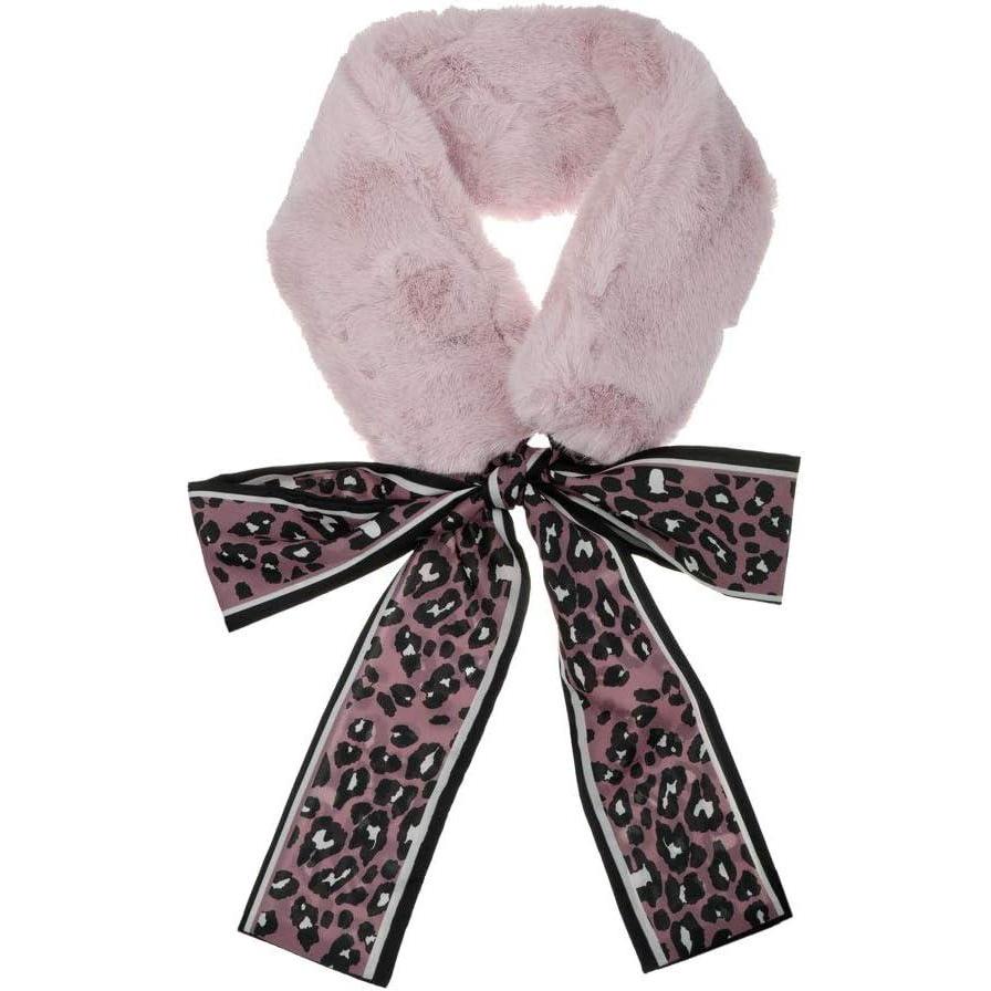 Allegra K Leopard Ribbons Faux Fur Winter Wrap Collar Scarf Plush Neck Scarves Warmer for Women(Pink)