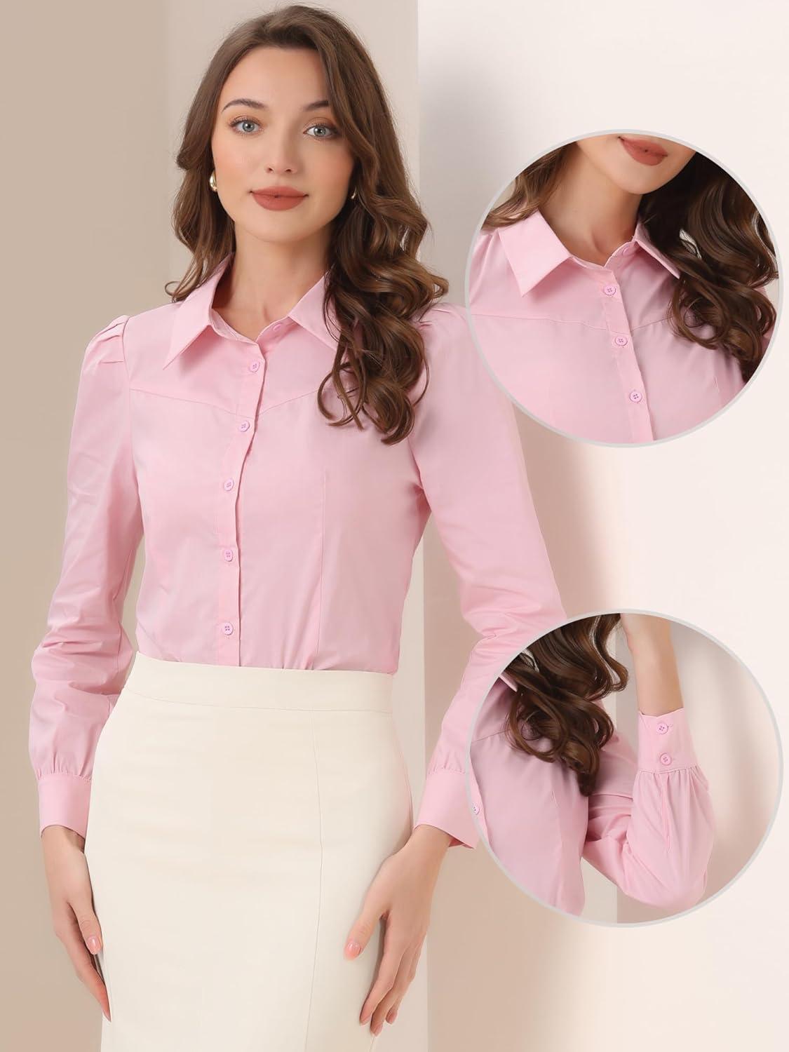 imageAllegra K Leotard Shirt for Womens Collared Business Casual Button Down Long Sleeves Bodysuit TopPink