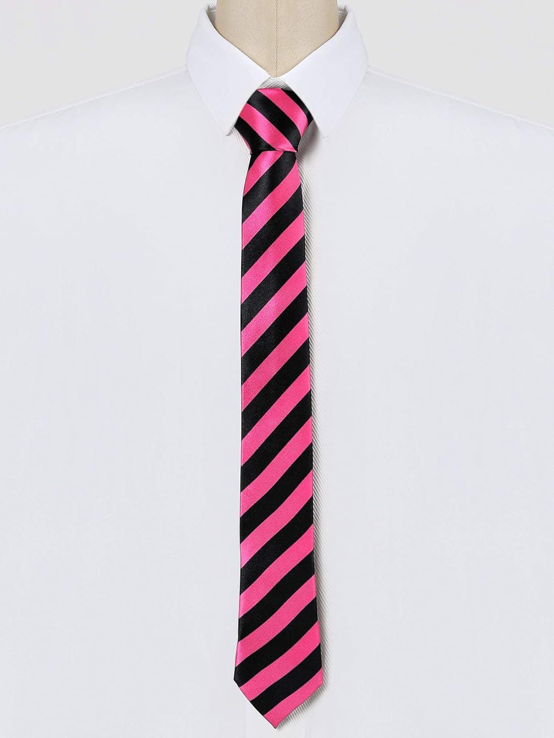 Allegra K Men's Stripe Classic Self-Tied Necktie Skinny Tie Slim Ties for Business Casual(Rose Red)