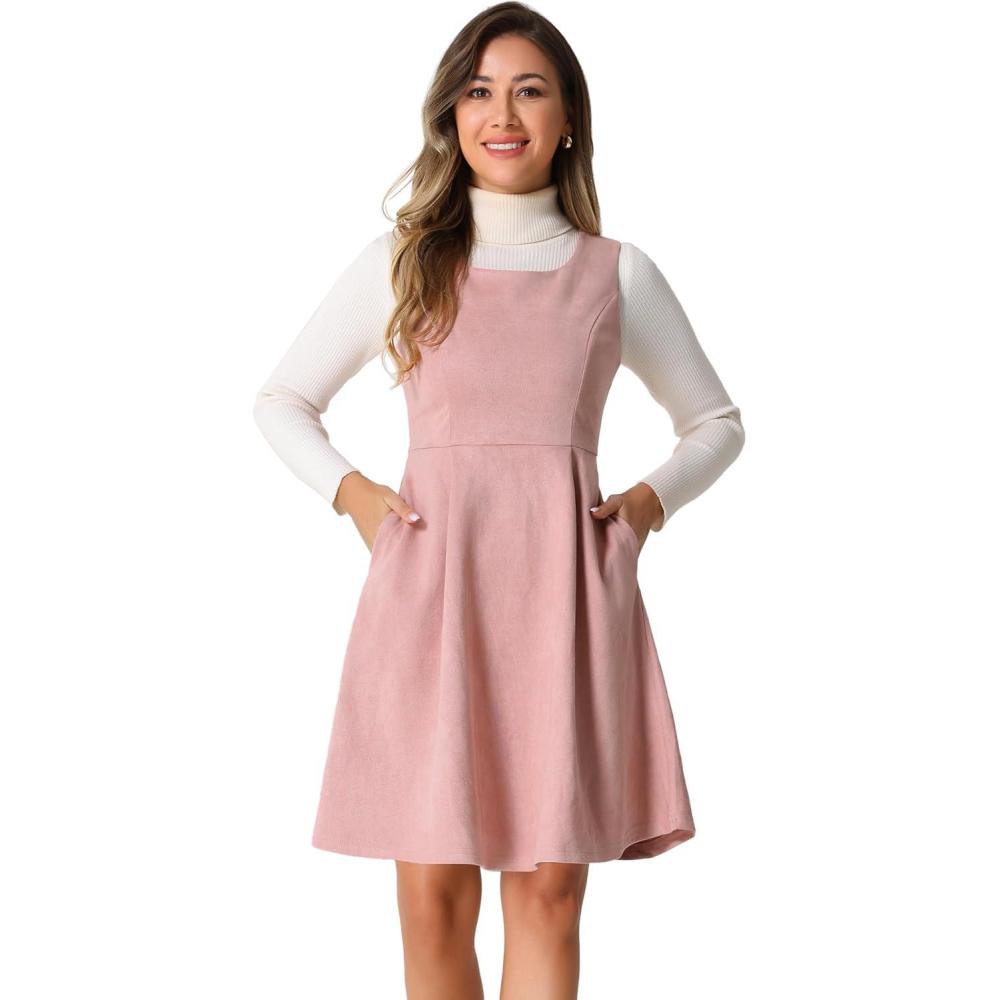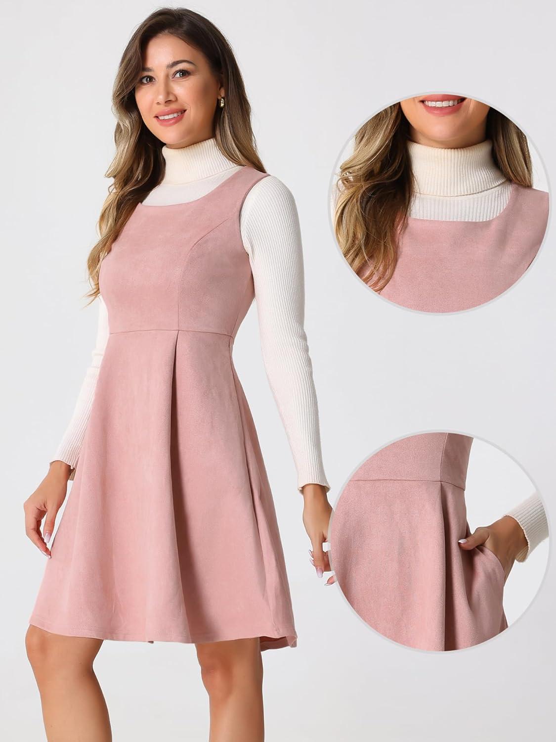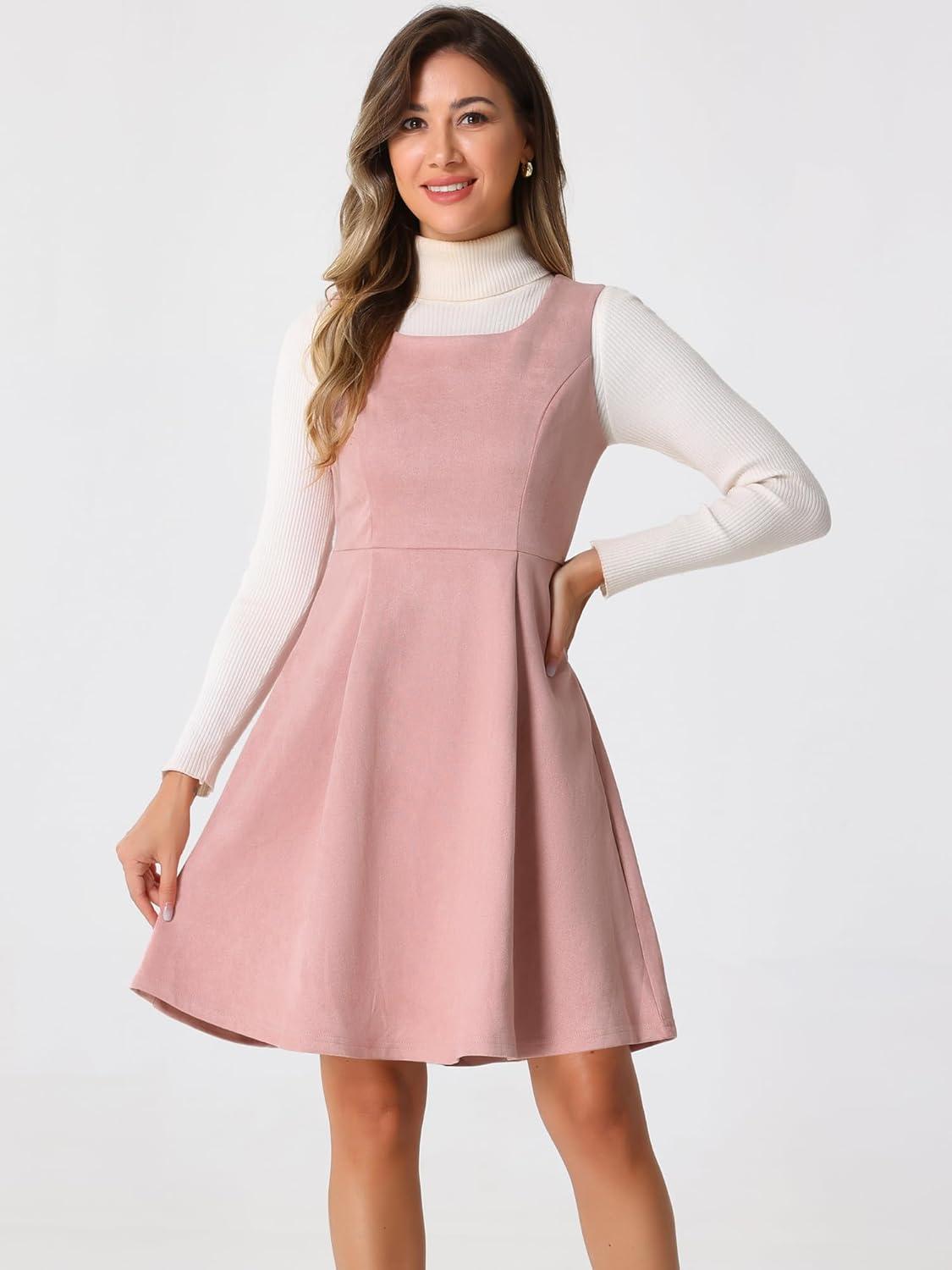 Allegra K Pinafore Dress for Women’s Sleeveless Casual Vintage Faux Suede t Shirt Dresses(Pink)