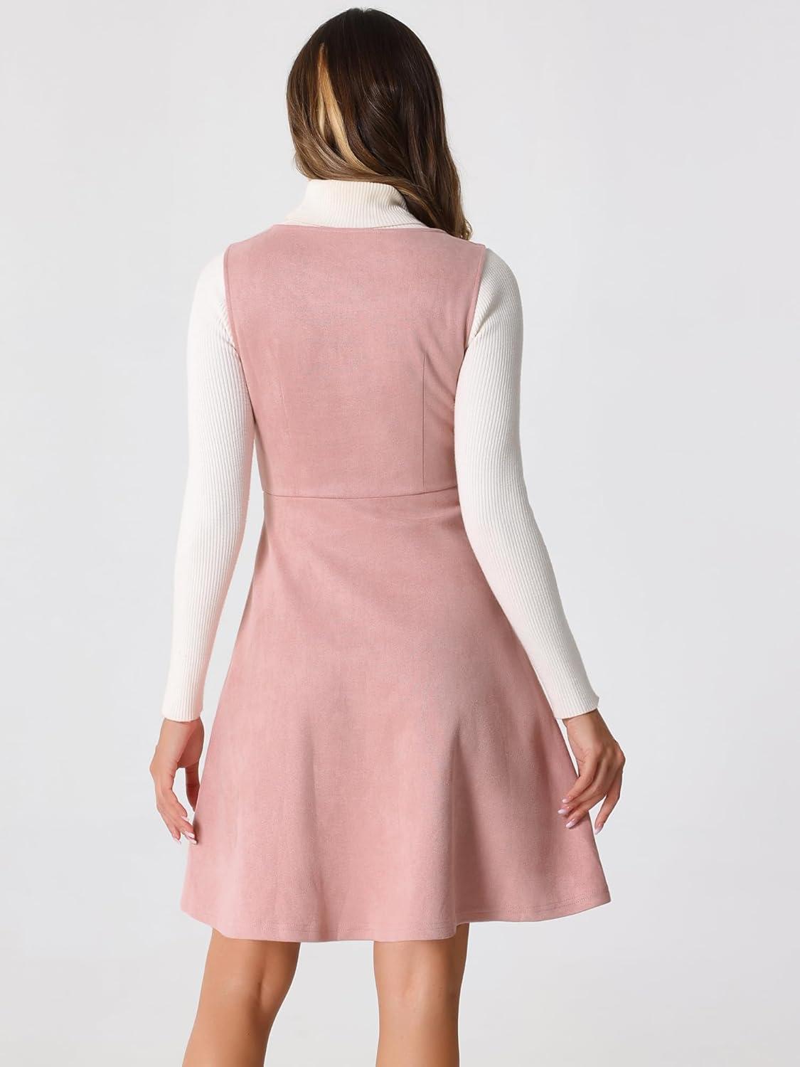 Allegra K Pinafore Dress for Women's Sleeveless Casual Vintage Faux Suede t Shirt Dresses(Pink)