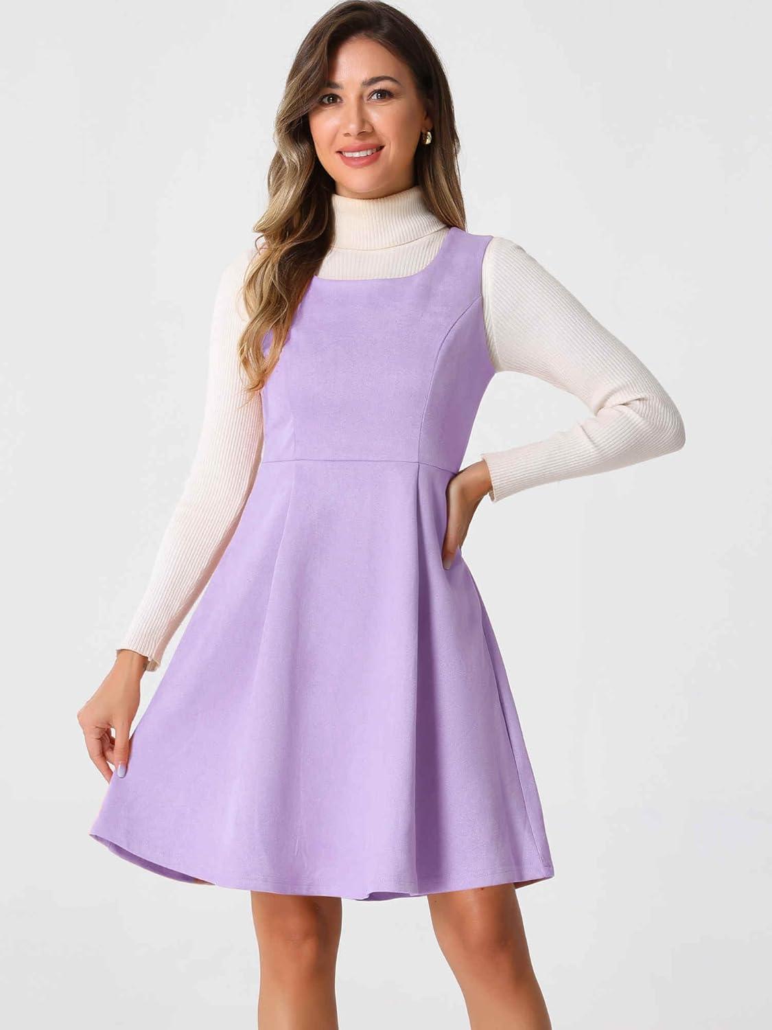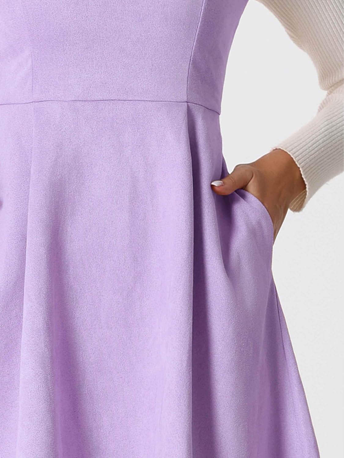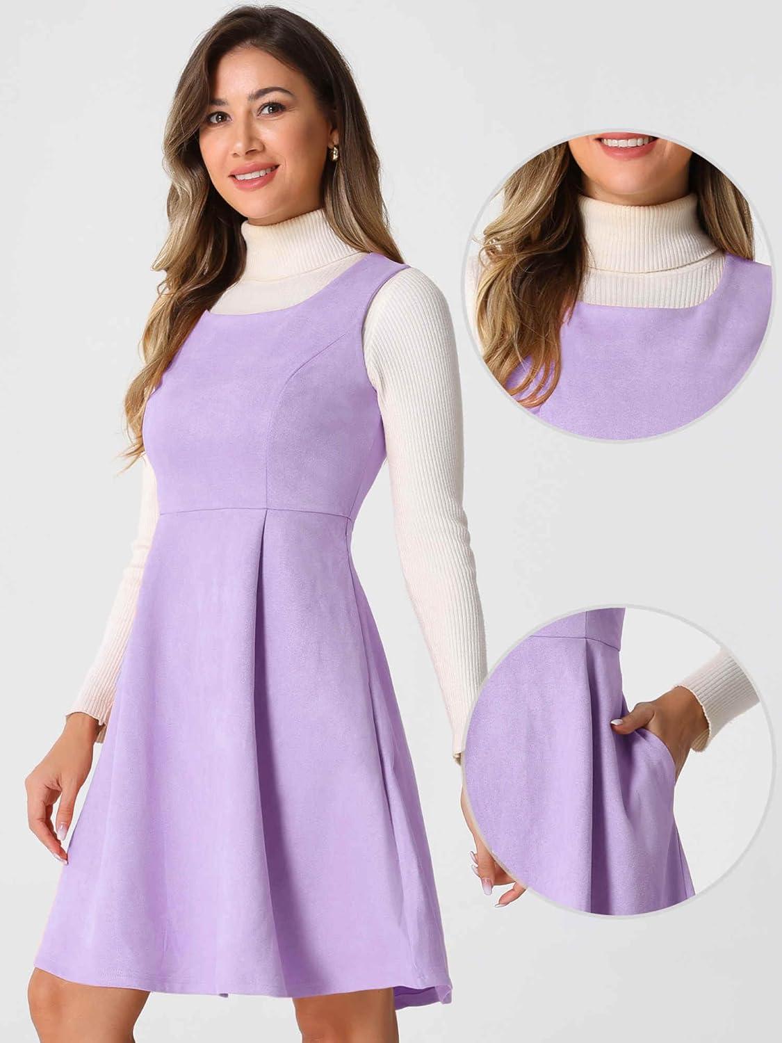 Allegra K Pinafore Dress for Women’s Sleeveless Casual Vintage Faux Suede t Shirt Dresses(Purple)