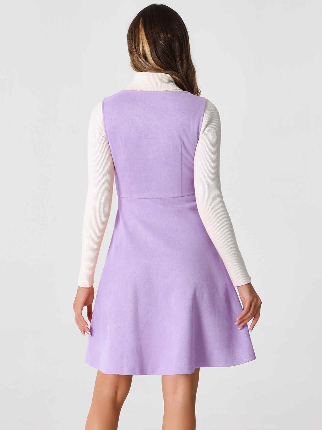 Allegra K Pinafore Dress for Women's Sleeveless Casual Vintage Faux Suede t Shirt Dresses(Purple)