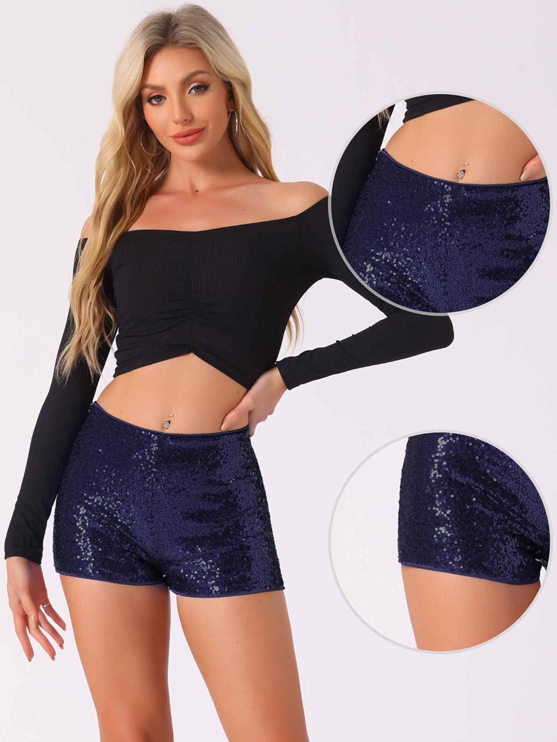 imageAllegra K Sequin Shorts for Women High Waist Party Night Out Concert Outfit Sparkly Mini ShortsDark Blue