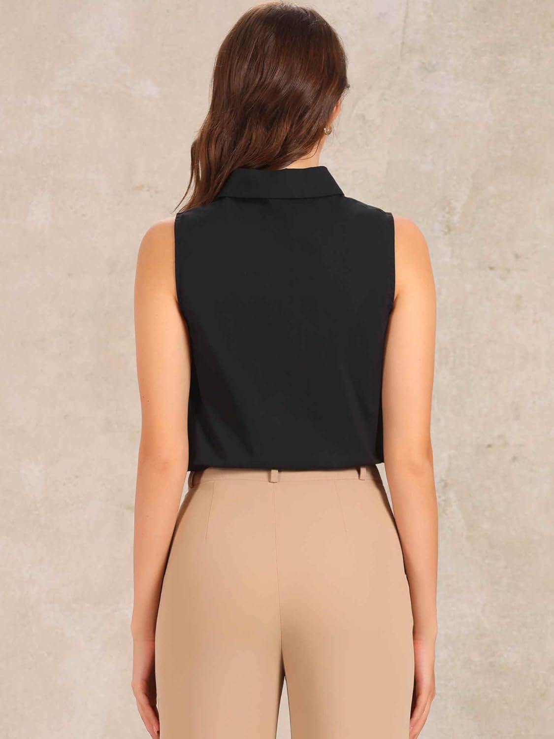 Allegra K Sleeveless Bodysuit Tops for Women's Business Work Button Down Leotard Shirt(Black)