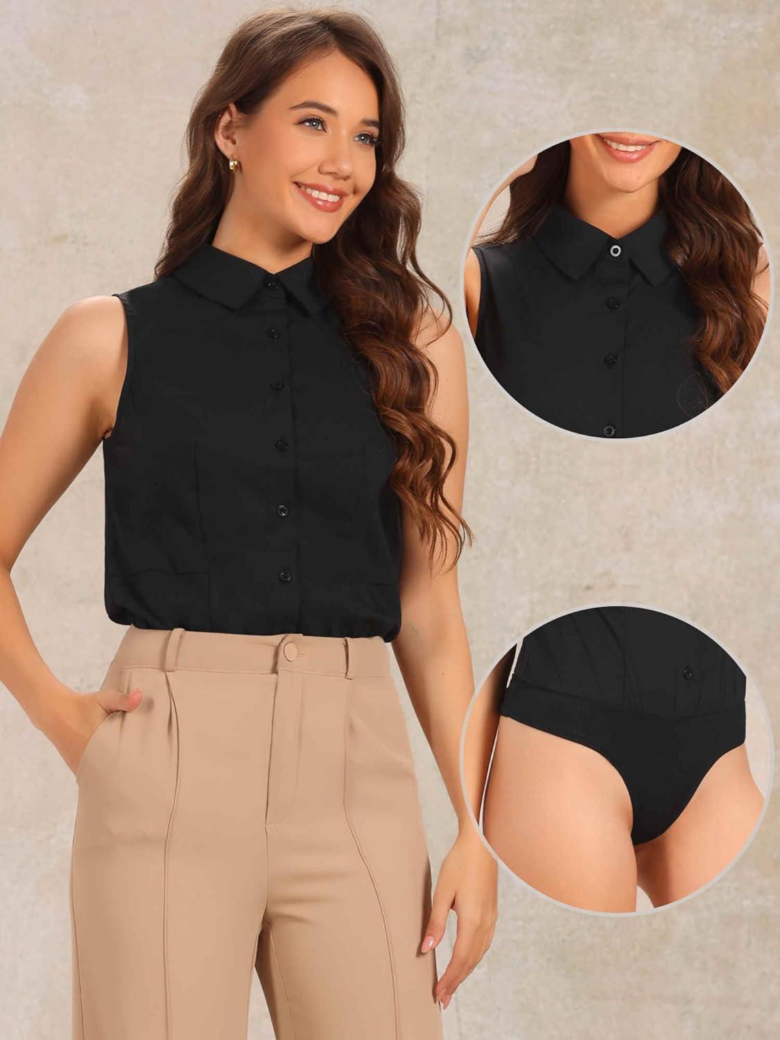 Allegra K Sleeveless Bodysuit Tops for Women’s Business Work Button Down Leotard Shirt(Black)