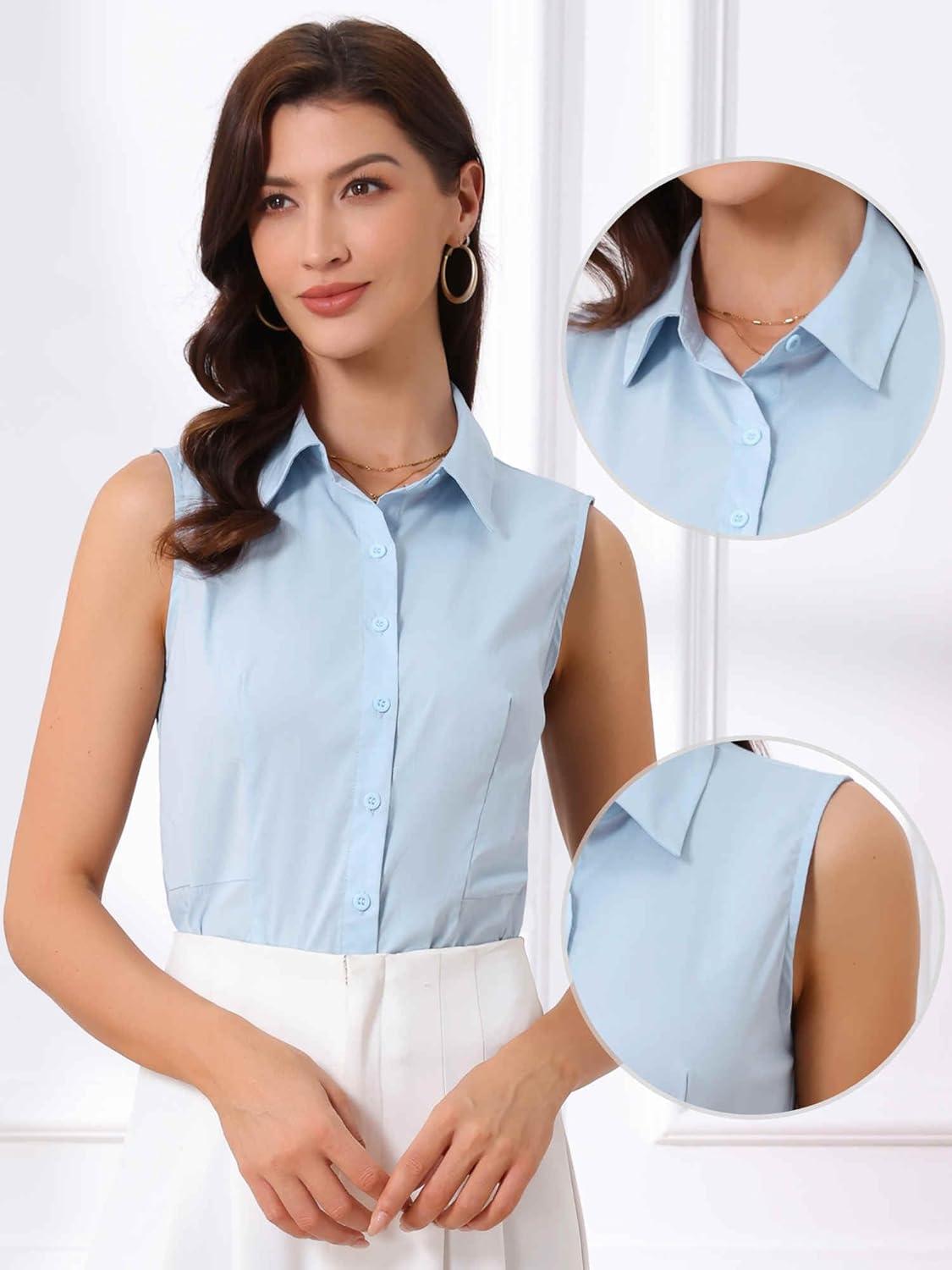Allegra K Sleeveless Bodysuit Tops for Women’s Business Work Button Down Leotard Shirt(Light Blue)