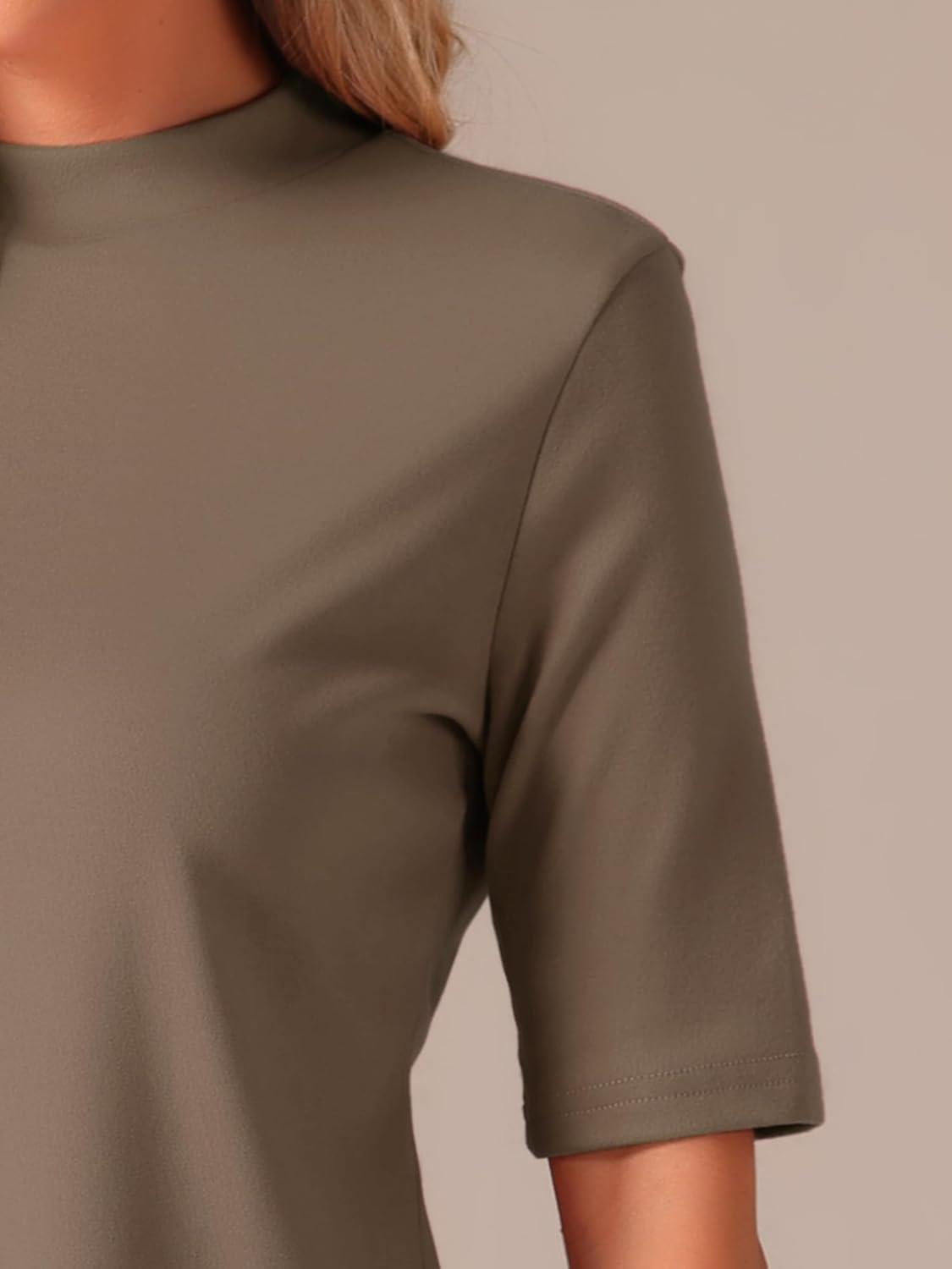 Allegra K Tops for Women Trendy Half Sleeve Mock Neck Casual Top 2025 Fall Slim Fit T-Shirts(Camel)
