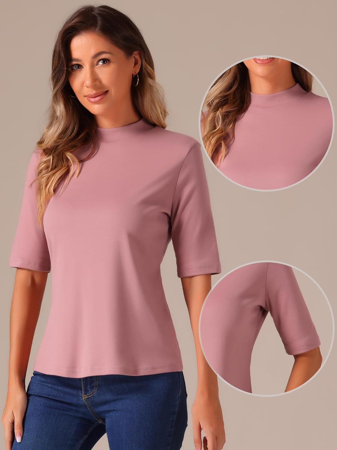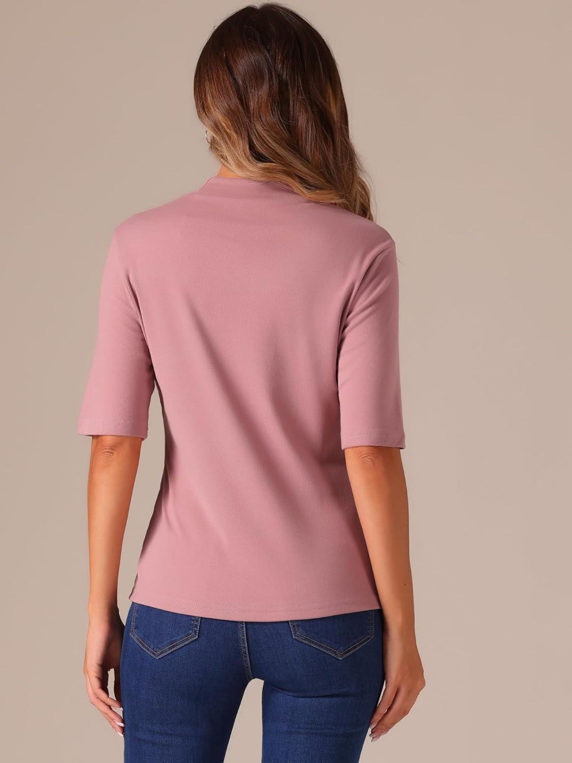 imageAllegra K Tops for Women Trendy Half Sleeve Mock Neck Casual Top 2025 Fall Slim Fit TShirtsDark Pink