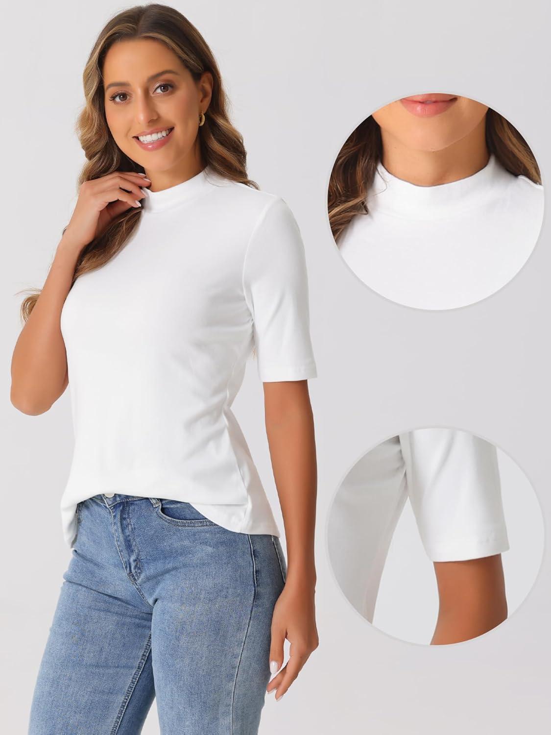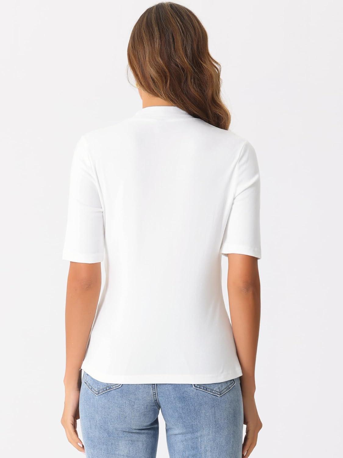 imageAllegra K Tops for Women Trendy Half Sleeve Mock Neck Casual Top 2025 Fall Slim Fit TShirtsWhite