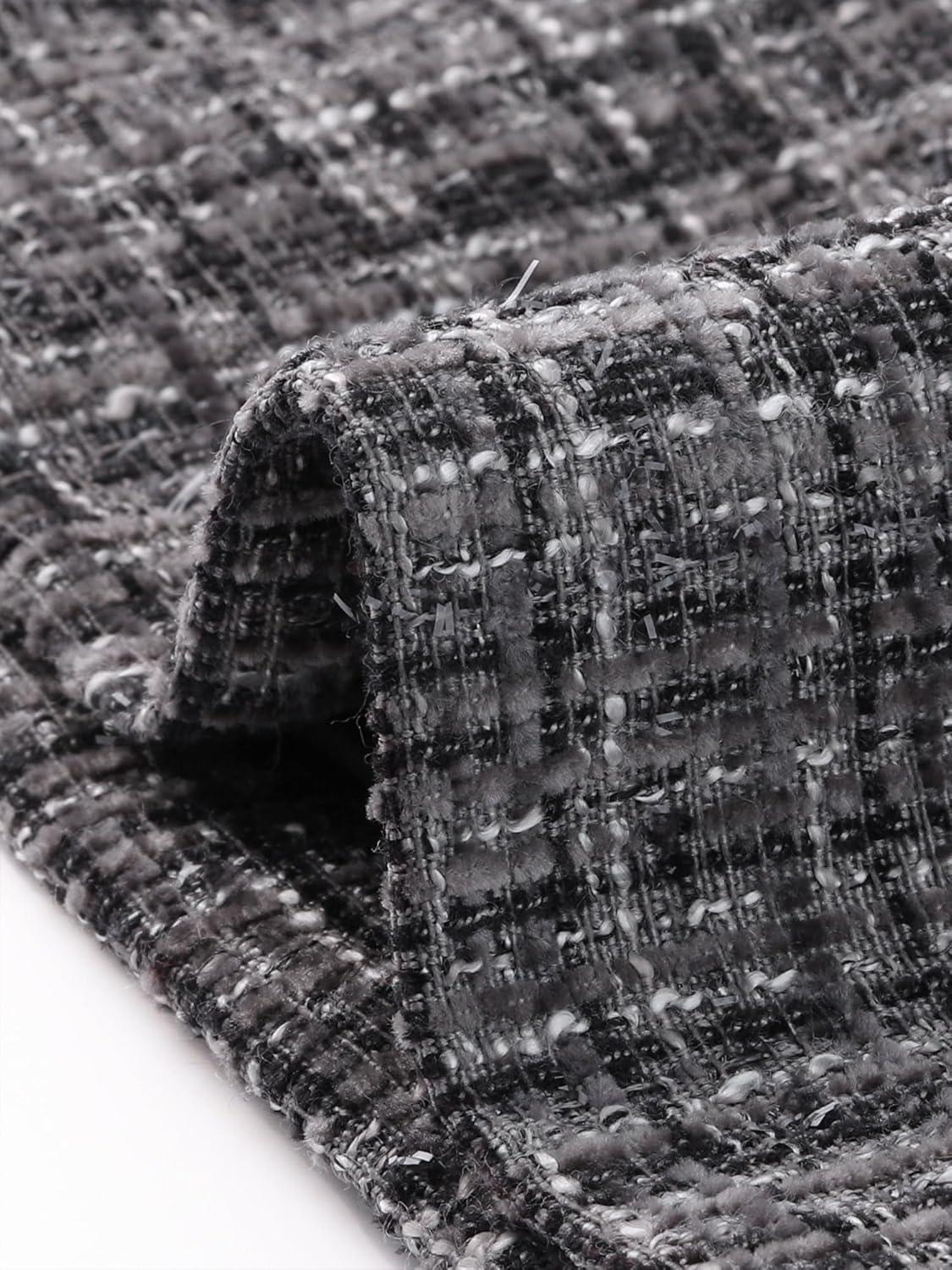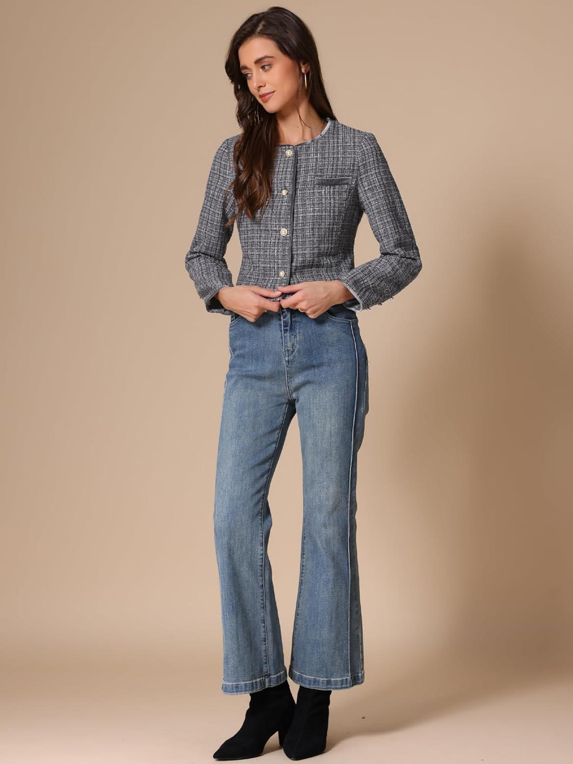 Allegra K Tweed Jacket for Women's Long Sleeve Casual Work Office Plaid Short Outwear(Black Grey)