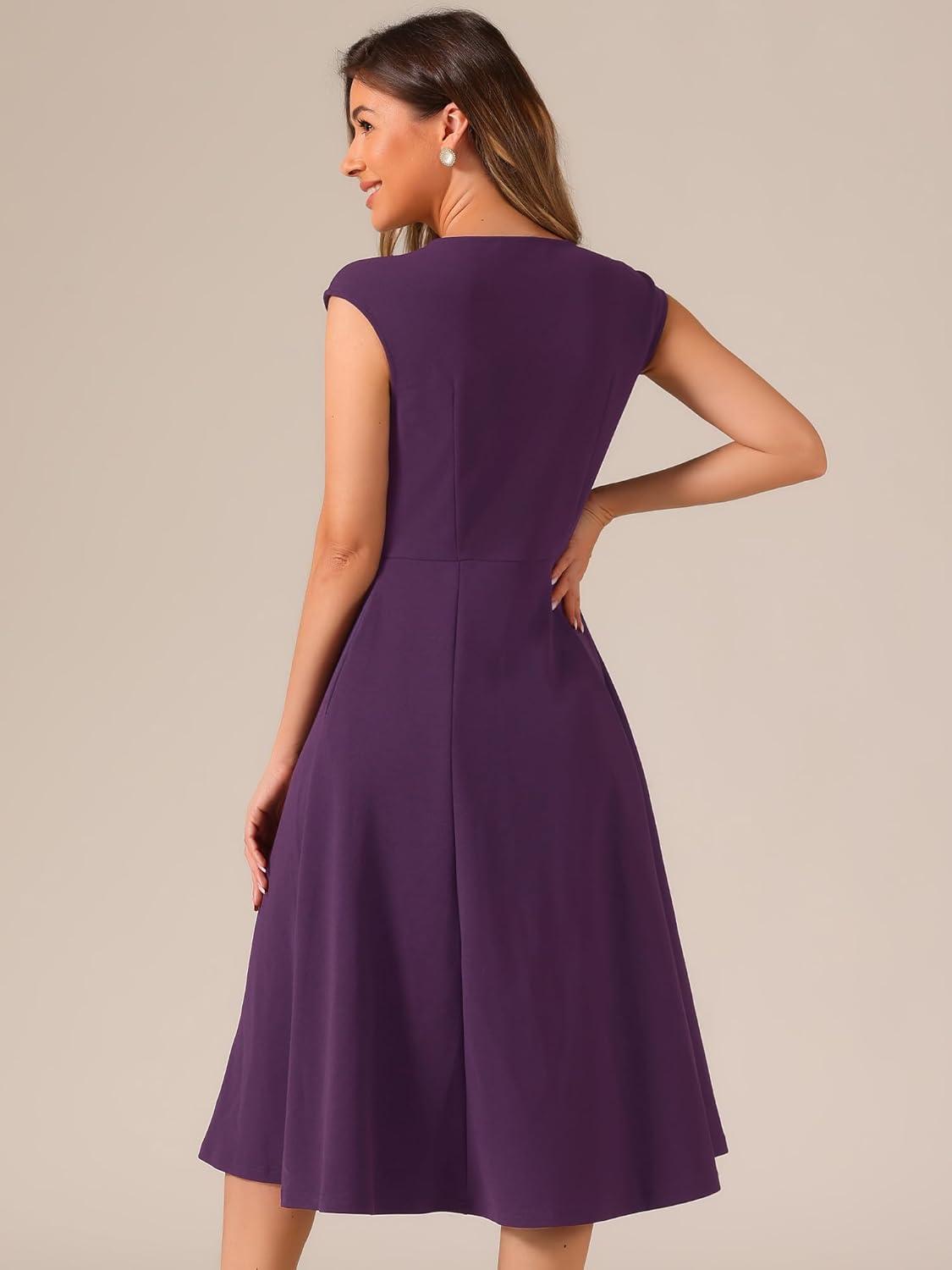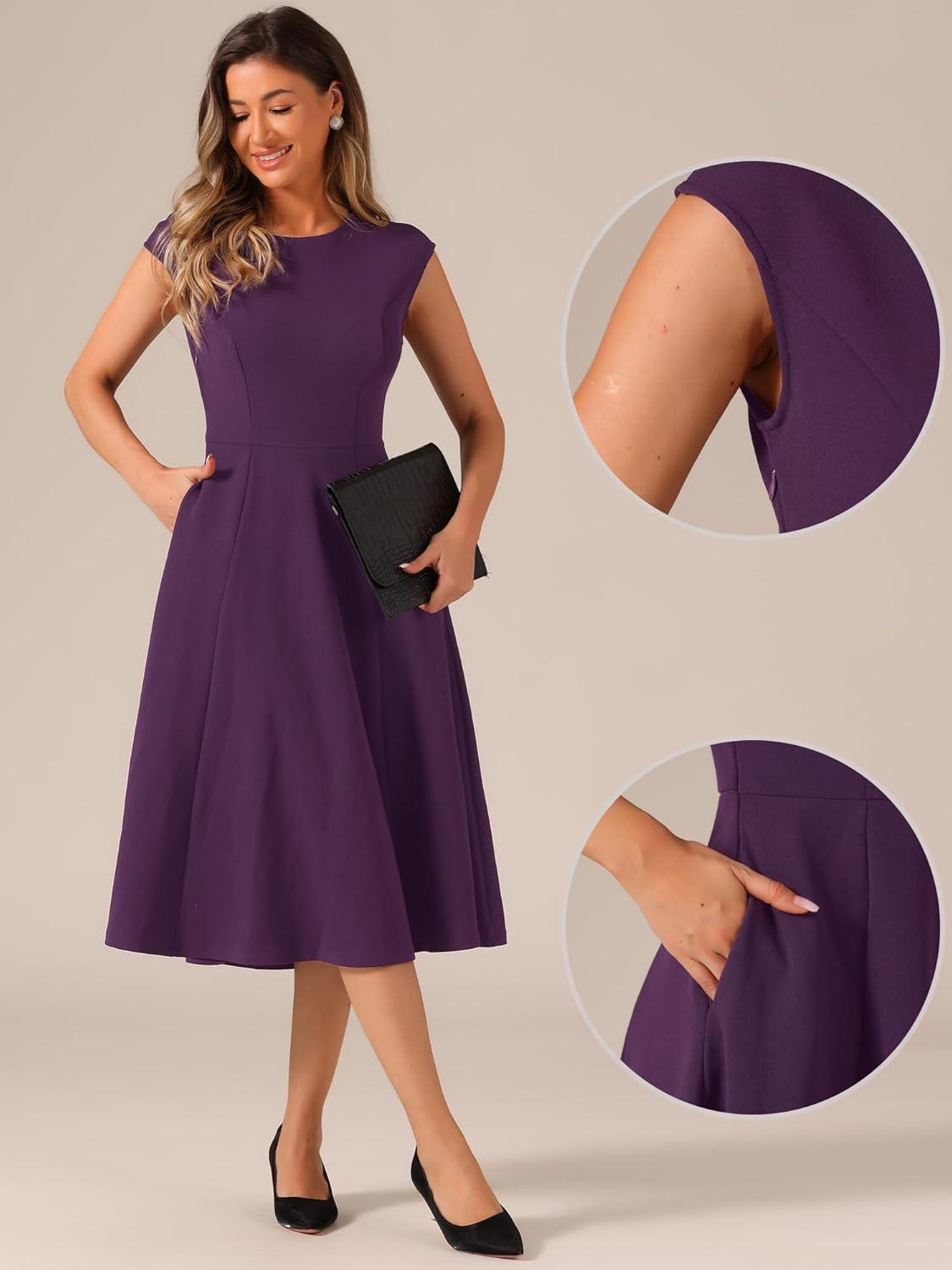Allegra K Wear to Work Office Dress for Women's 2025 Cap Sleeve with Pockets A-Line Dress(Deep Purple)