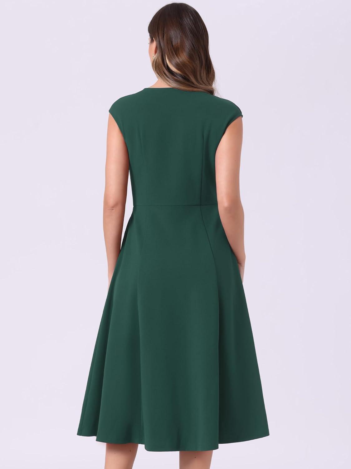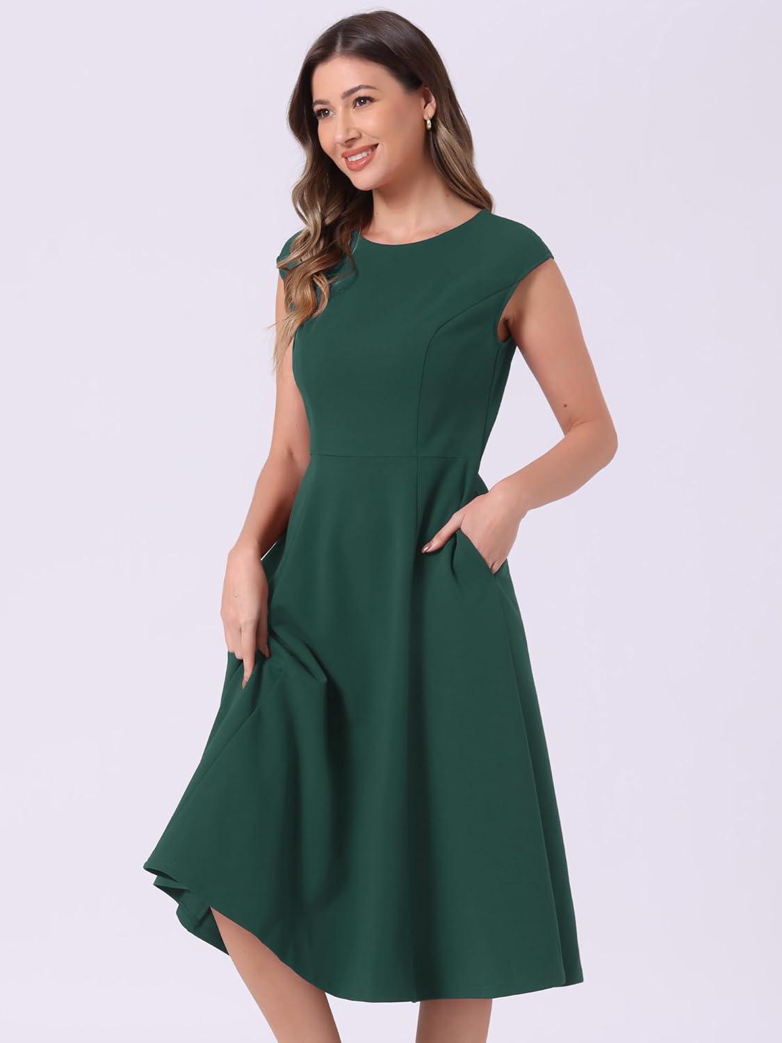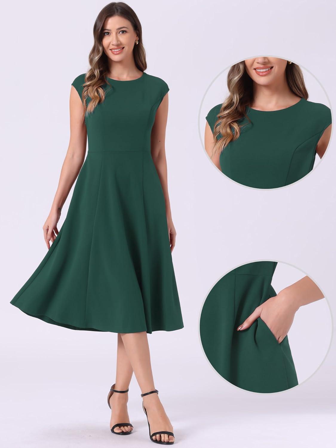Allegra K Wear to Work Office Dress for Women’s 2025 Cap Sleeve with Pockets A-Line Dress(Gray Green)