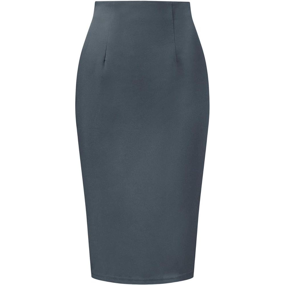 imageAllegra K Wear to Work Pencil Skirts for Womens Business Knee Length High Waist Bodycon Suit SkirtGrey