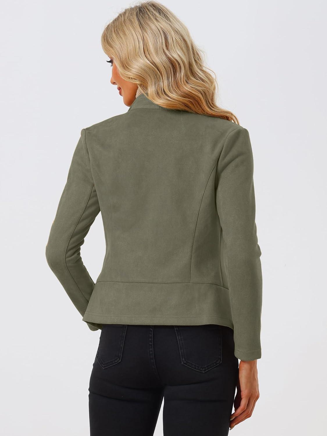 Allegra K Women Faux Suede Jacket Lapel Draped Open Front Cardigan Casual Trendy Suede Blazer(Olive Green)