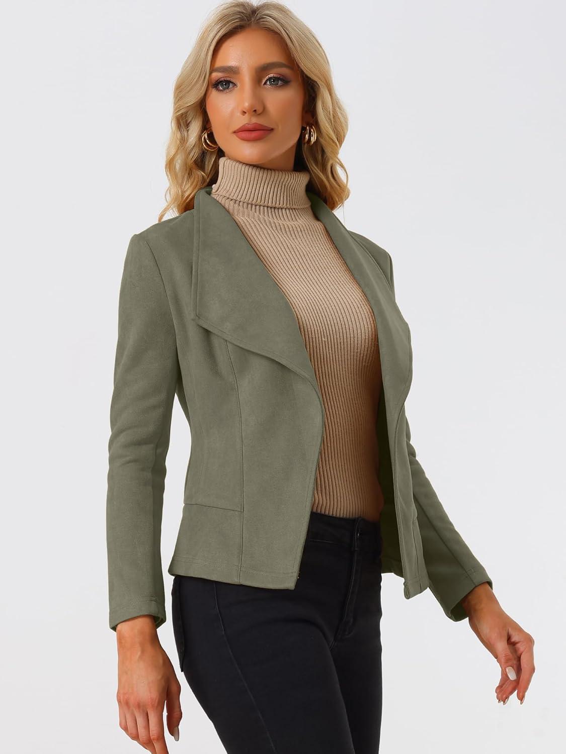 Get your hands on our newest Allegra K Women Faux Suede Jacket Lapel Draped Open Front Cardigan Casual Trendy Suede Blazer(Olive Green) and enjoy a limited-time discount offer.