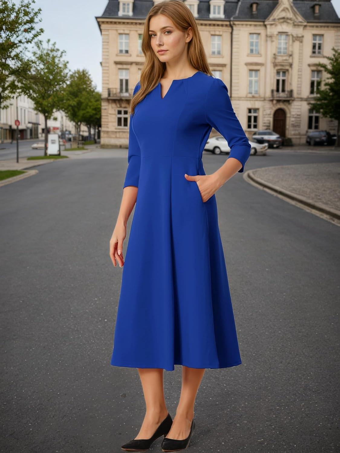 Don’t miss out on our limited-time offer: buy Allegra K Women’s 3/4 Sleeve Dresses V Neck Elegant A-Line Work Business Formal Midi Dress with Pockets(Royal Blue), get a free {accessory}!