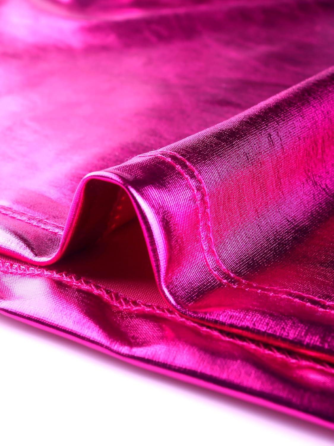 Allegra K Women’s 80s Disco Outfit Party Club Sparkly Rainbow Metallic Top(Hot Pink)