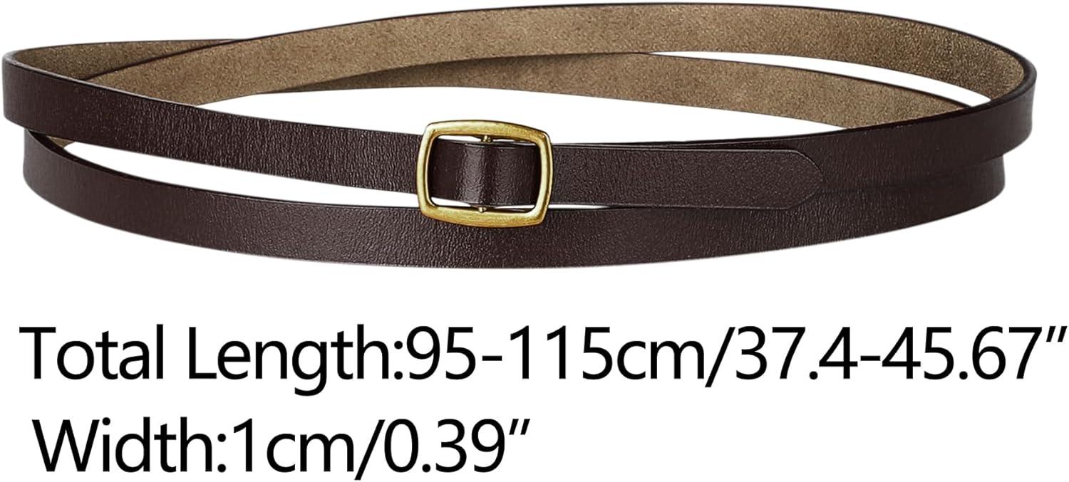 The skinny leather women belt have a square buckle in the front, The perforation-free design allows you to adjust belts size to fit your waistline easily.