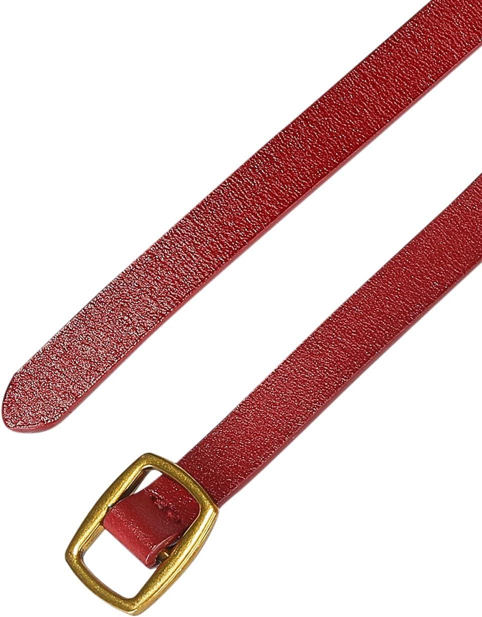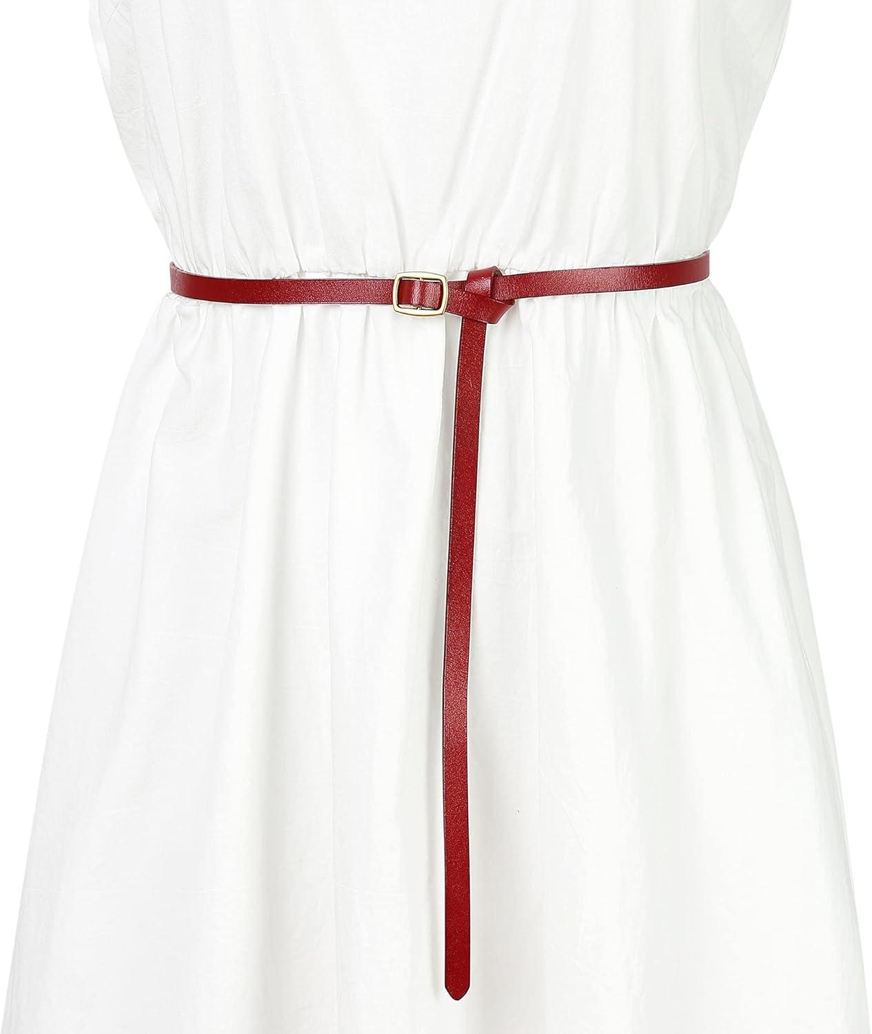 The skinny leather women belt have a square buckle in the front, The perforation-free design allows you to adjust belts size to fit your waistline easily.
