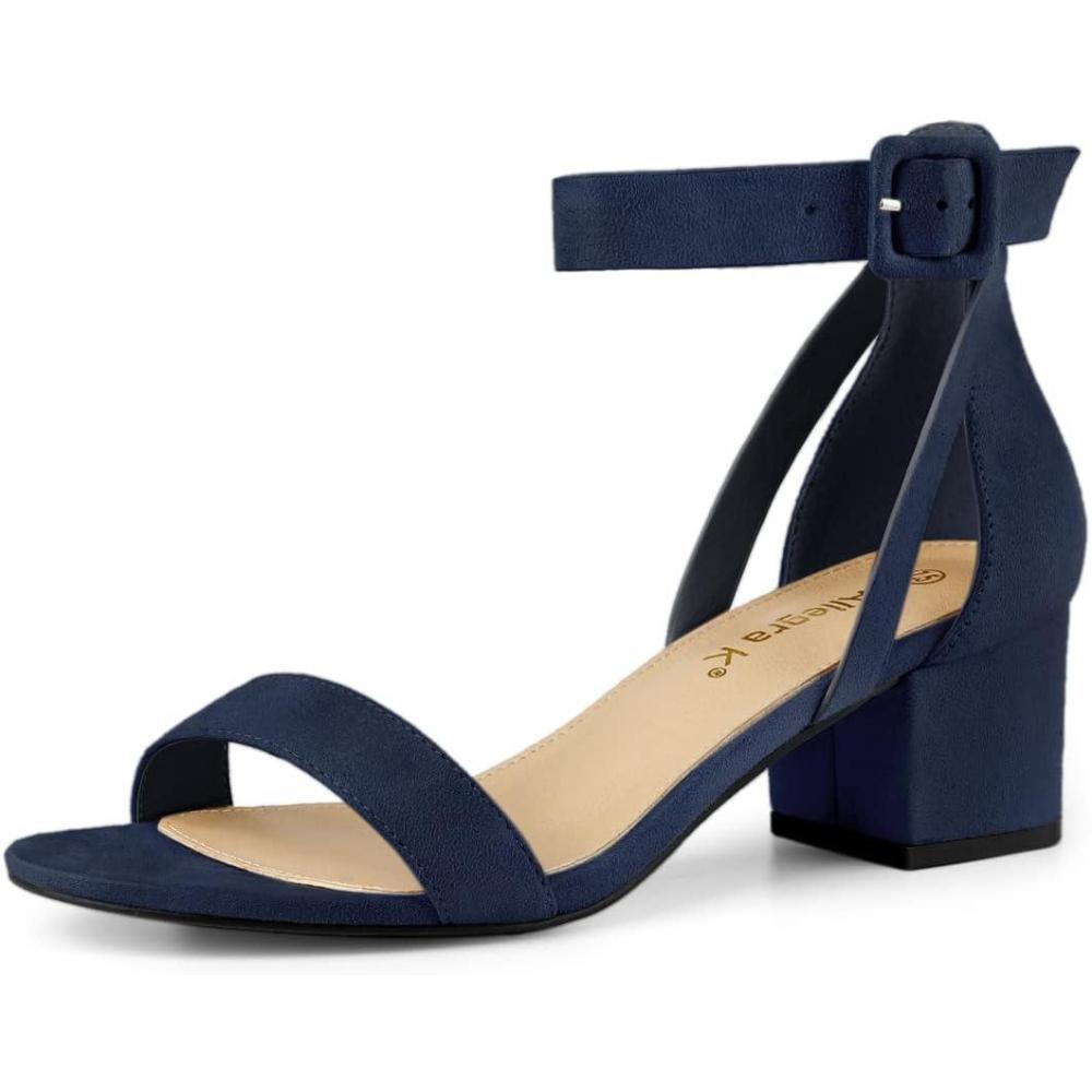 Allegra K Women’s Ankle Strap Block Low Heel Sandal(Navy Blue)