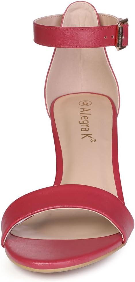 Allegra K Women’s Ankle Strap Kitten Heel Sandals(Red)