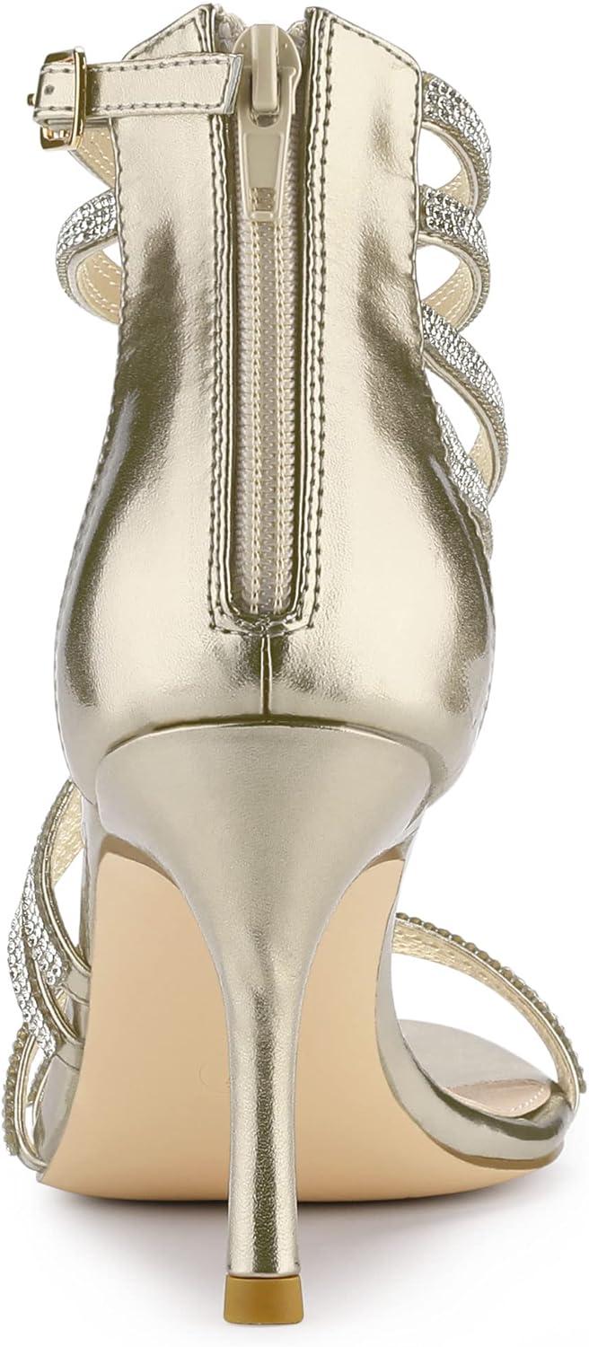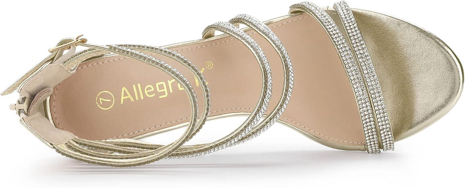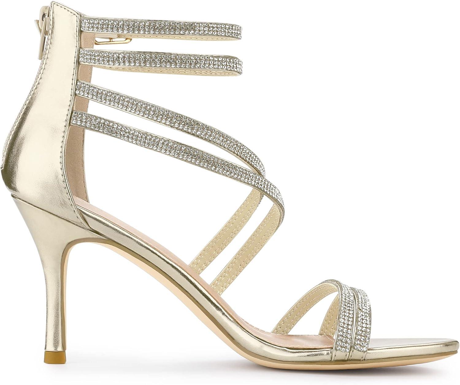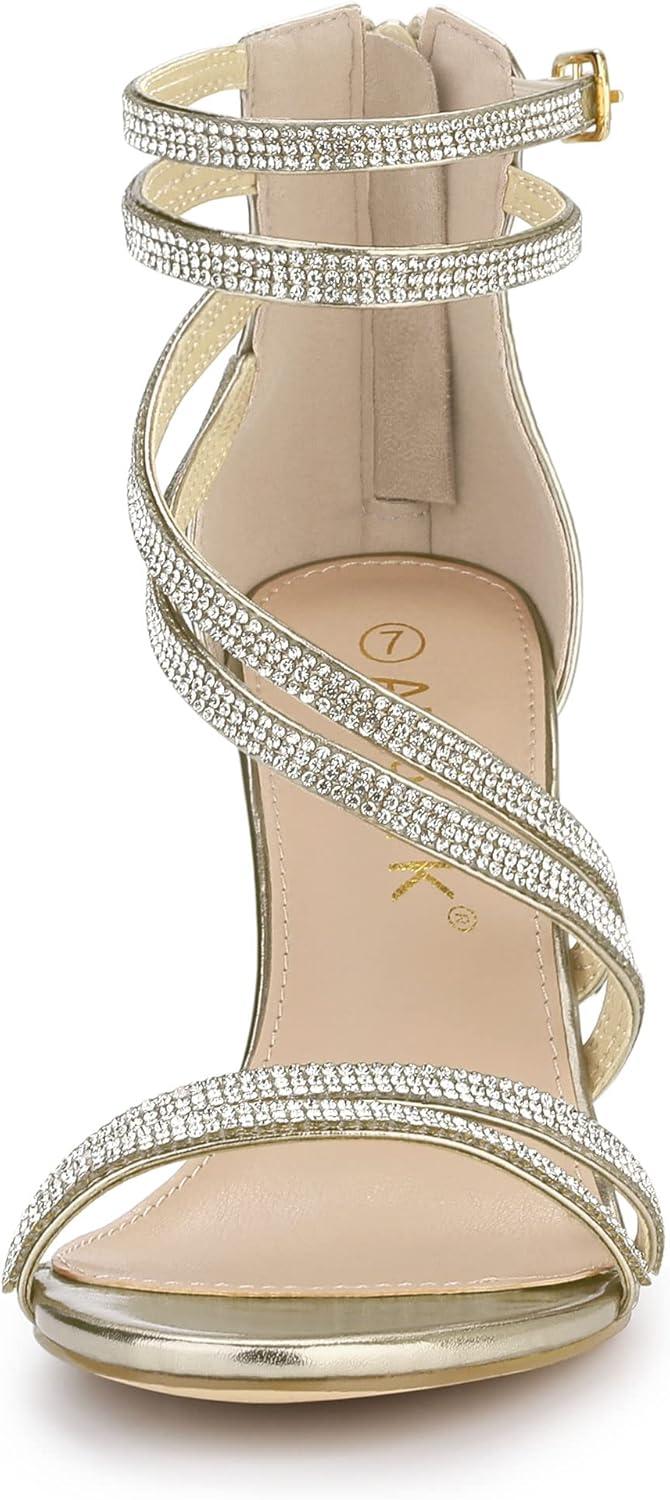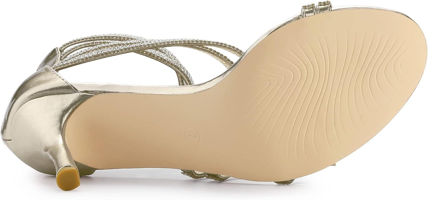 Allegra K Women’s Ankle Strap Rhinestone Stiletto Heeled Sandals(Gold)