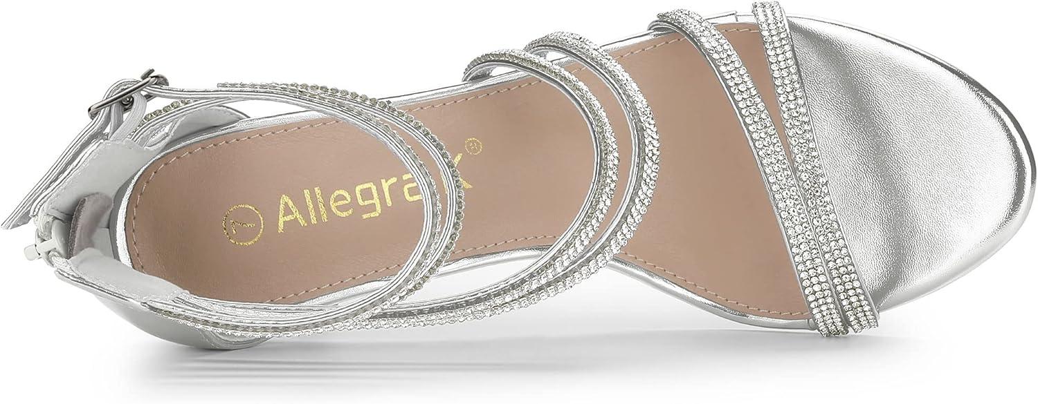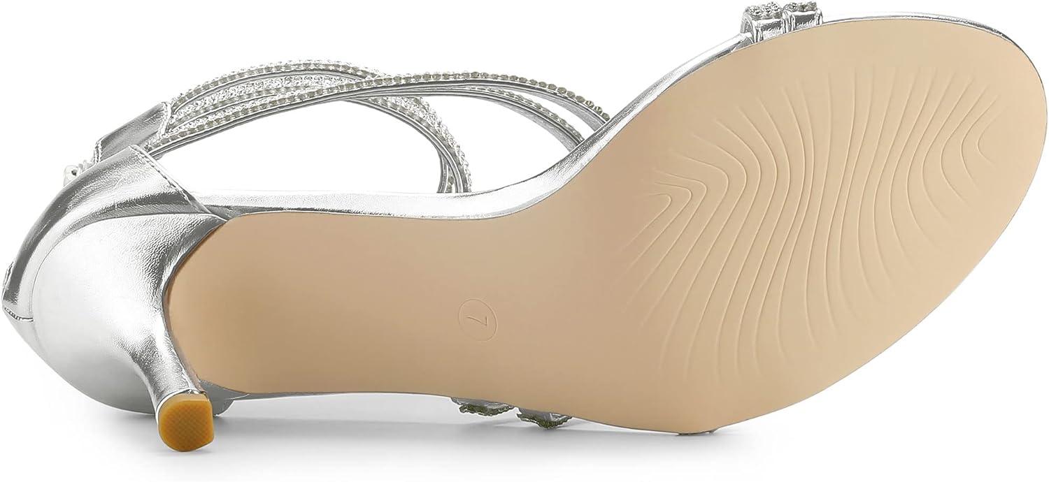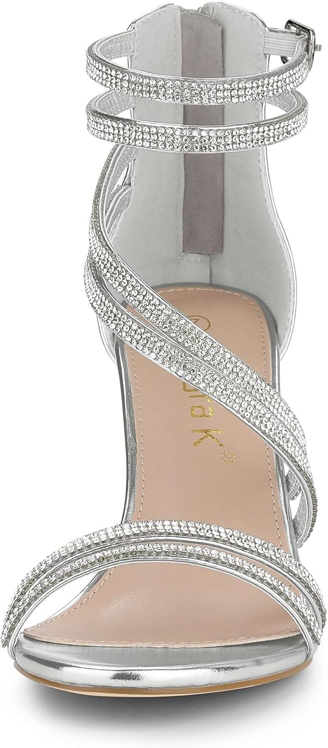 Allegra K Women’s Ankle Strap Rhinestone Stiletto Heeled Sandals(Silver)