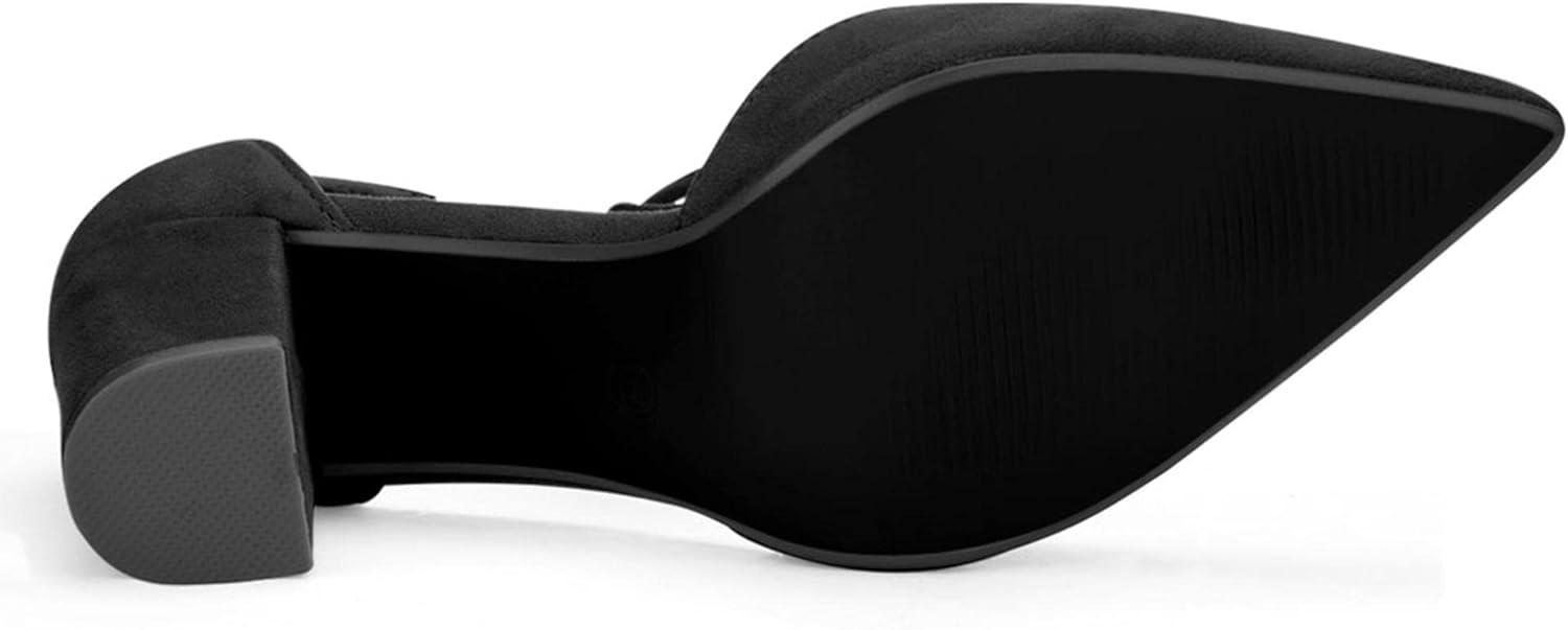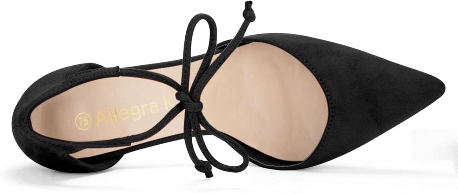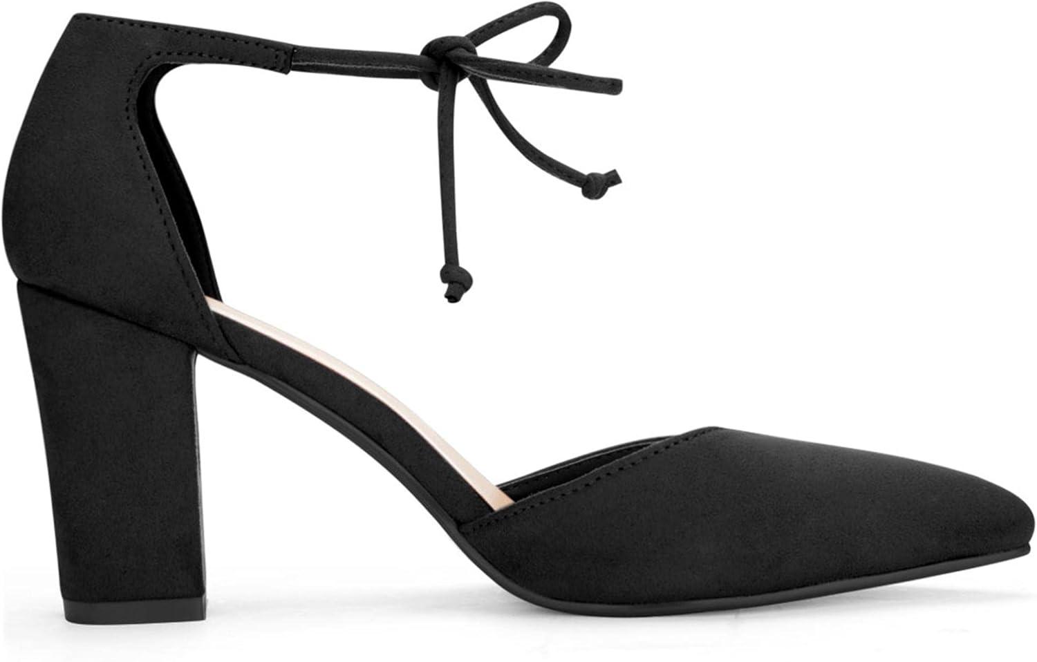 Allegra K Women’s Ankle Tie Point Toe Dress Pumps(Black-faux Suede)
