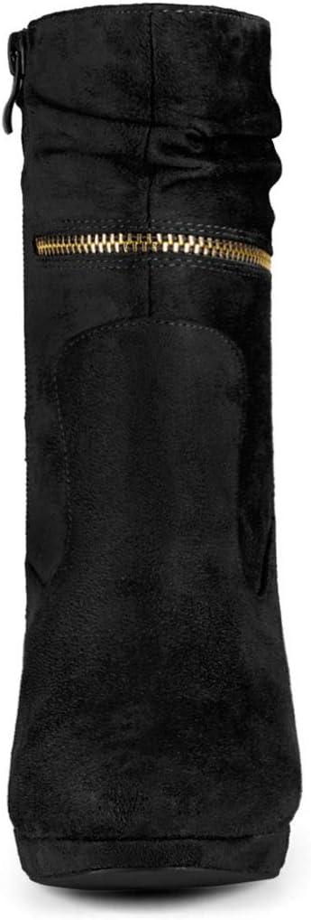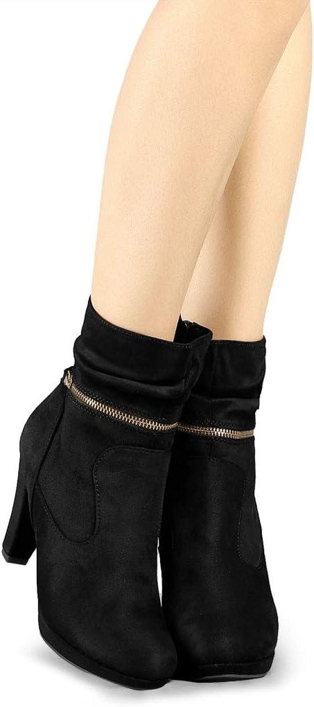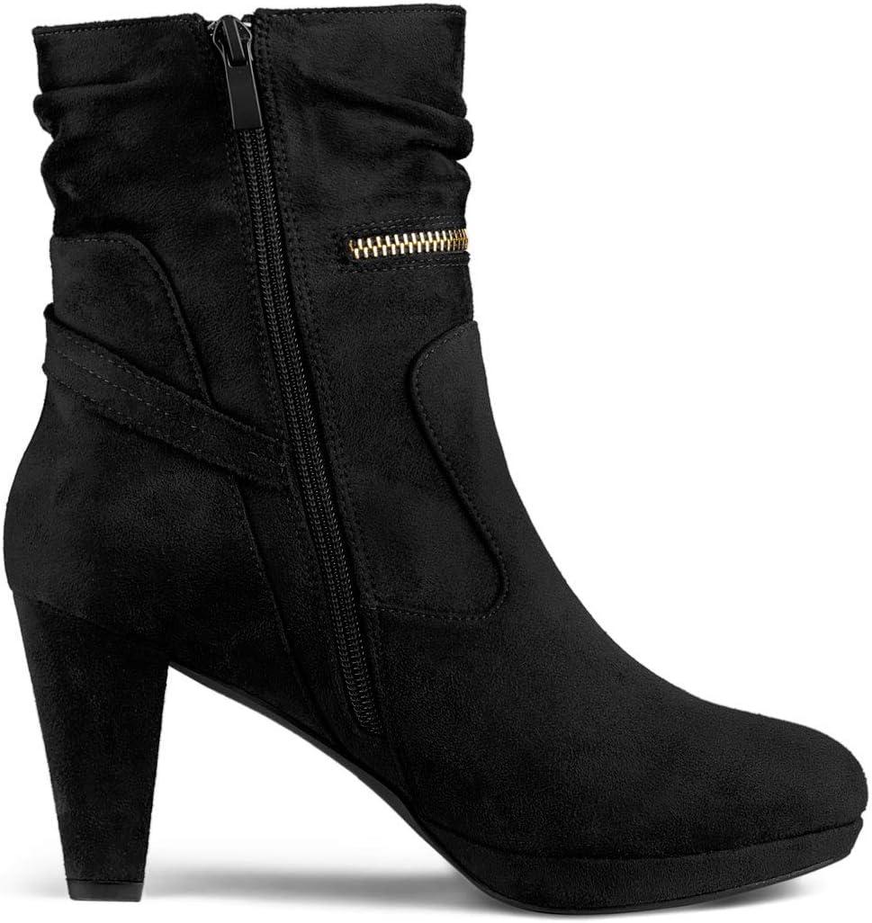 Allegra K Women’s Ankle Zip Platform High Heel Mid Calf Boots(Black)