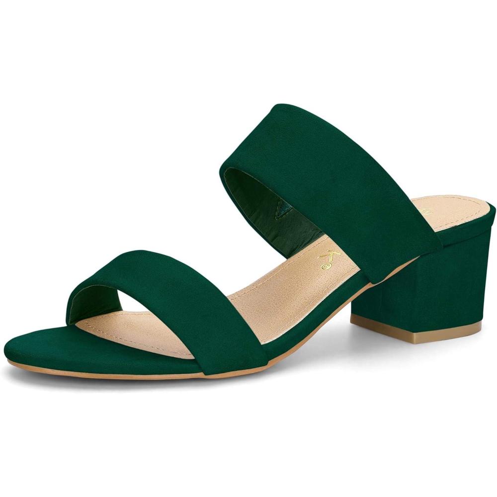 Allegra K Women’s Block Heel Dual Straps Slide Sandals(Green)