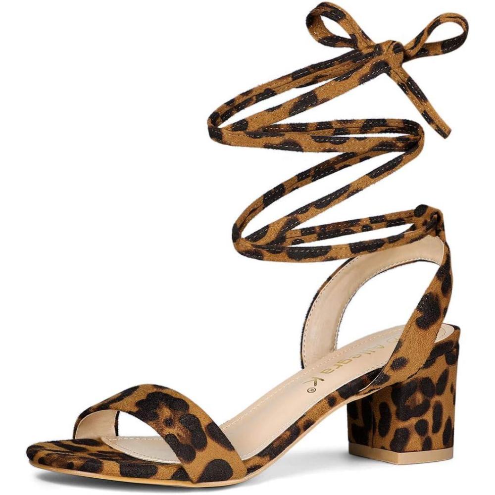 Allegra K Women’s Block Heel Sandals Lace Up Heels(Leopard Print)