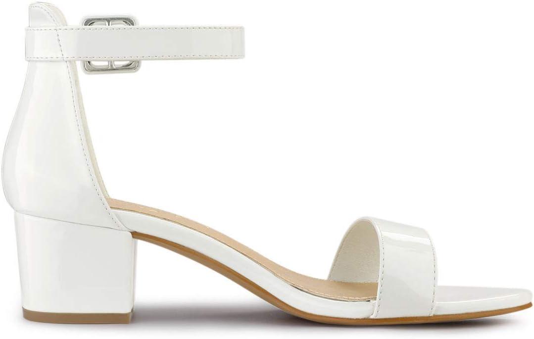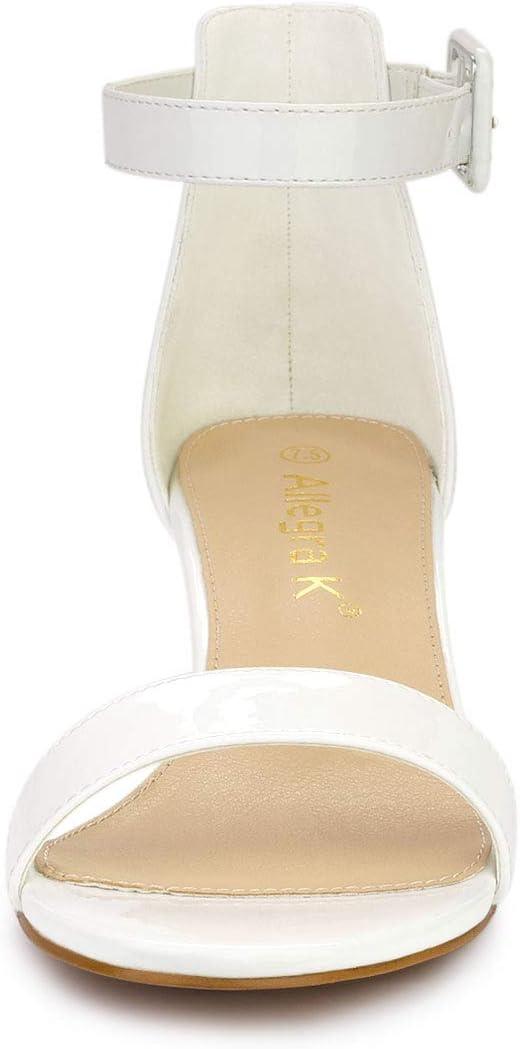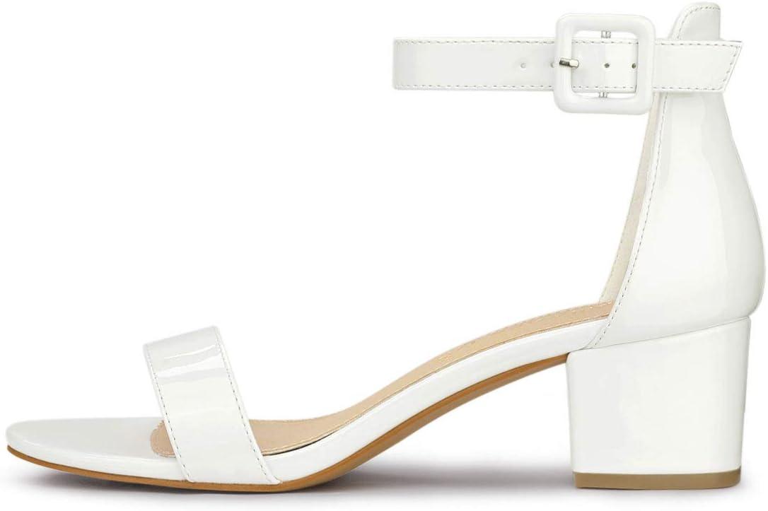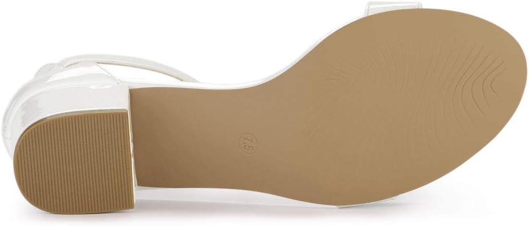 Allegra K Women’s Block Low Heels Ankle Strap Sandals(White)