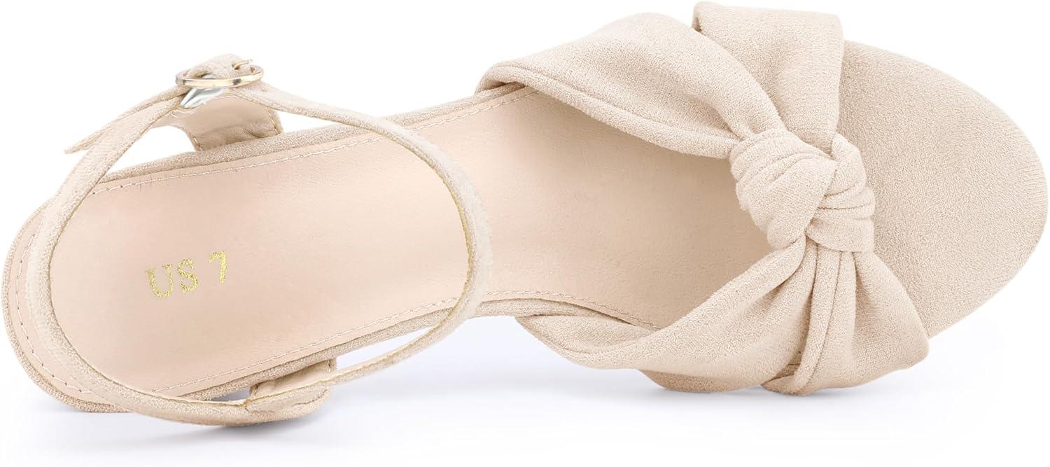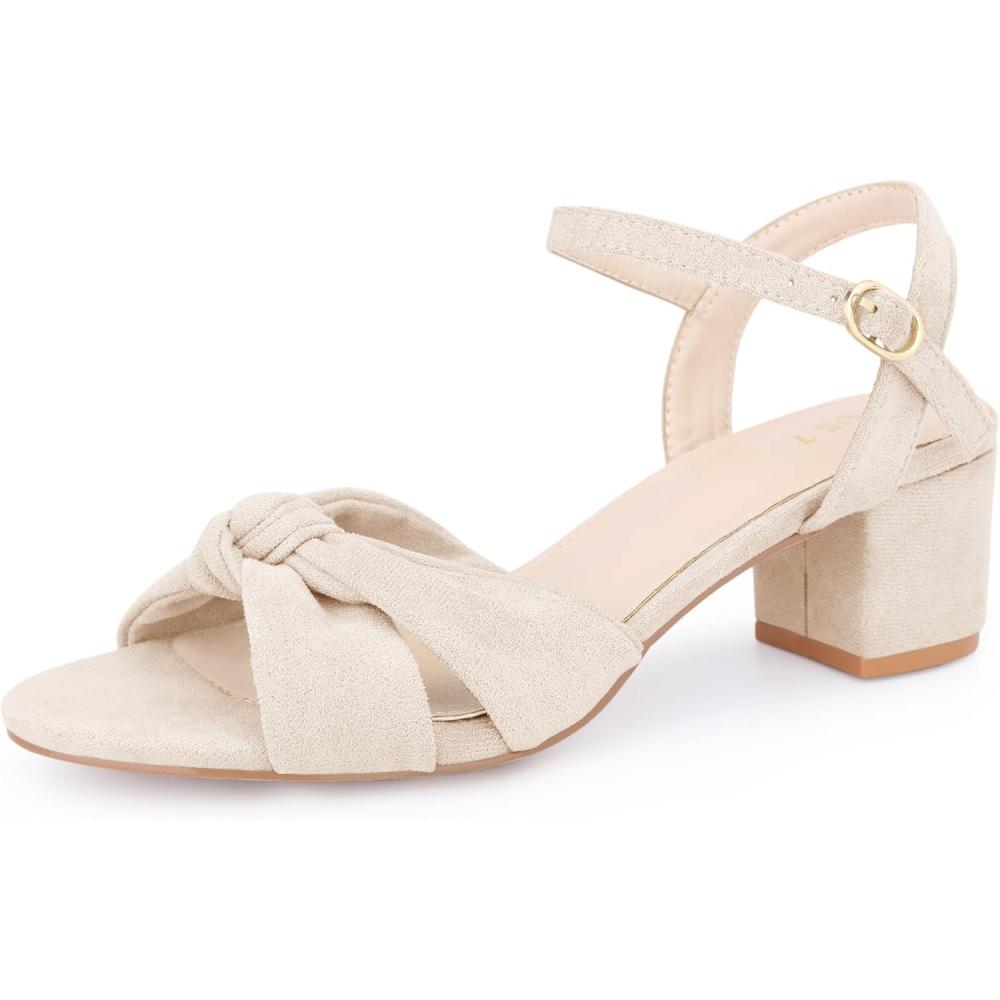 Allegra K Women’s Bow Knot Chunky Heel Slingback Strap Sandals(Beige)
