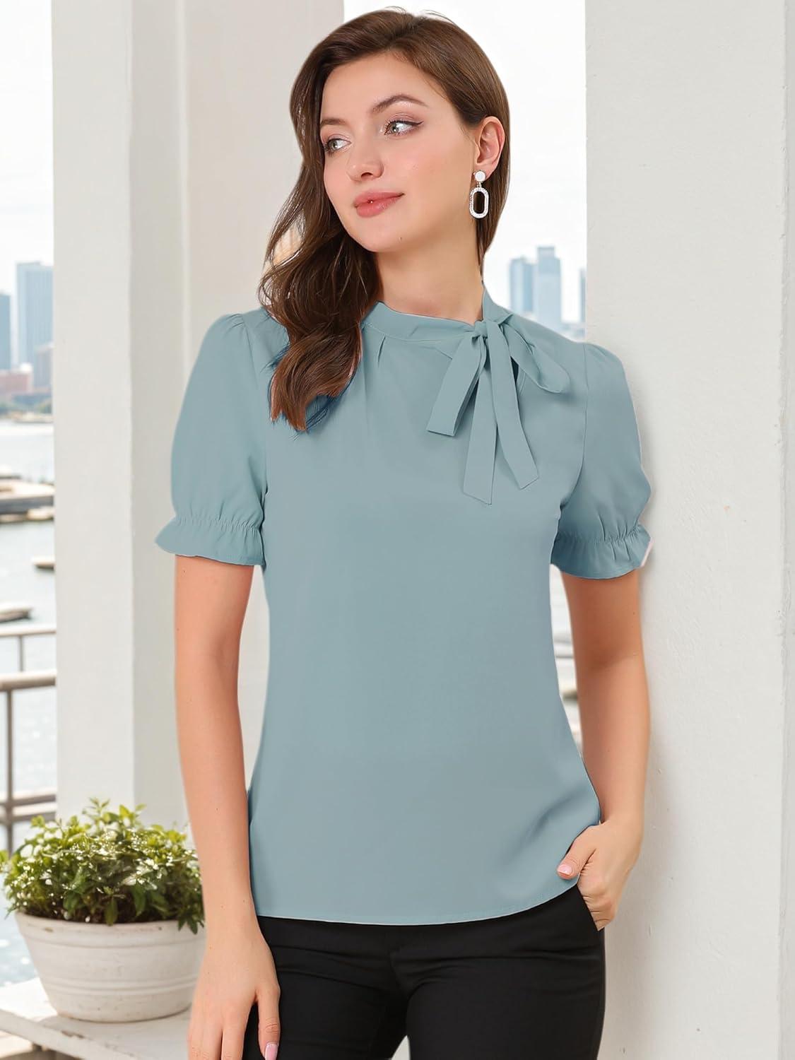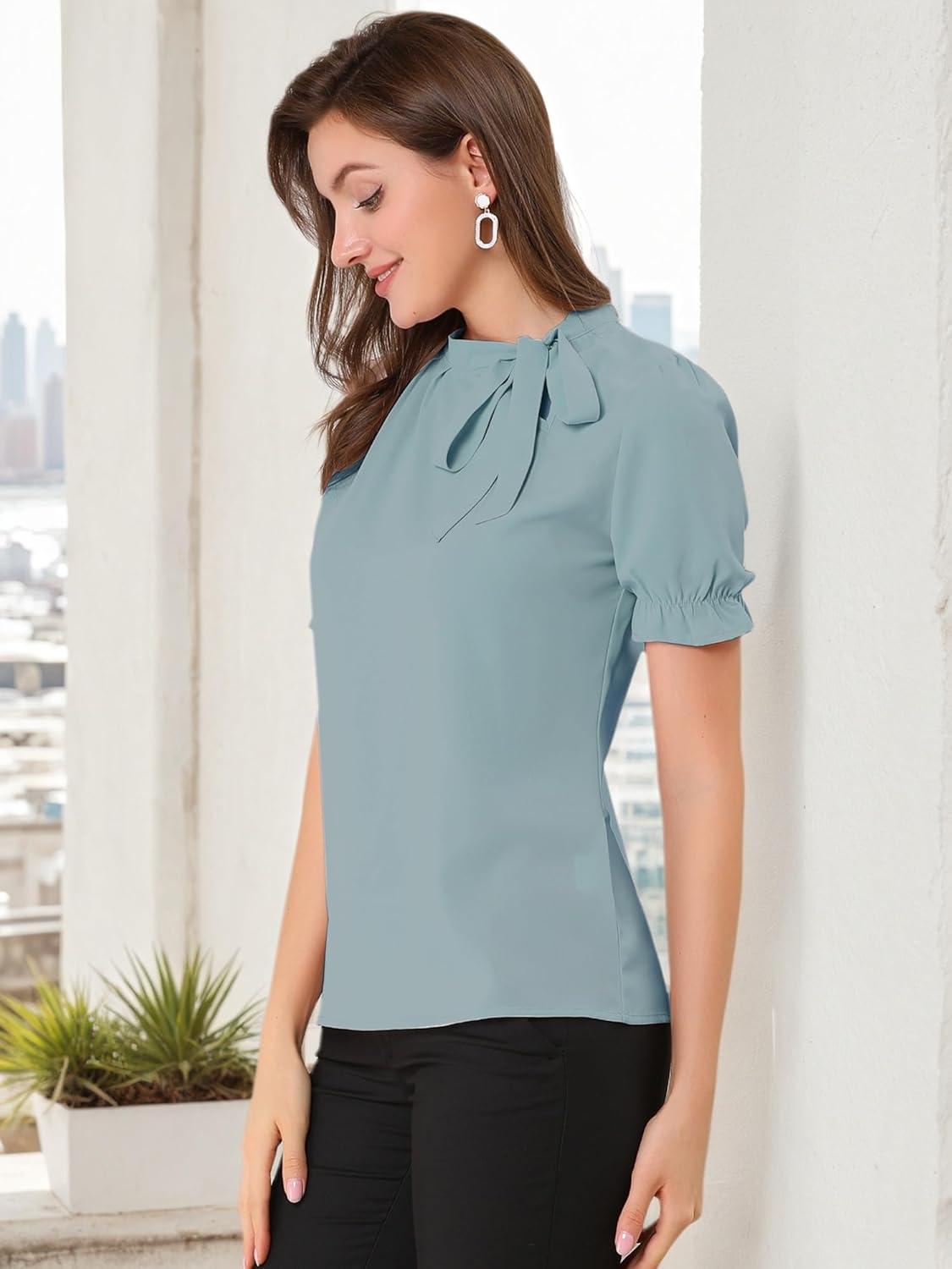 Get up to 70% off on Allegra K Women’s Bow Tie Neck Tops Elegant Office Short Sleeve Blouse(Mint Blue) styles during our end-of-season clearance event.