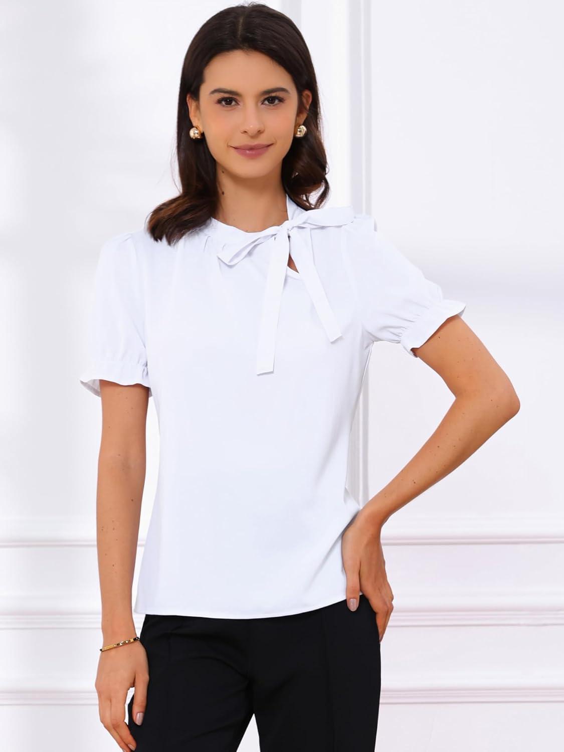 Get your hands on our exclusive Allegra K Women’s Bow Tie Neck Tops Elegant Office Short Sleeve Blouse(White 1) collection, now at a discounted price.