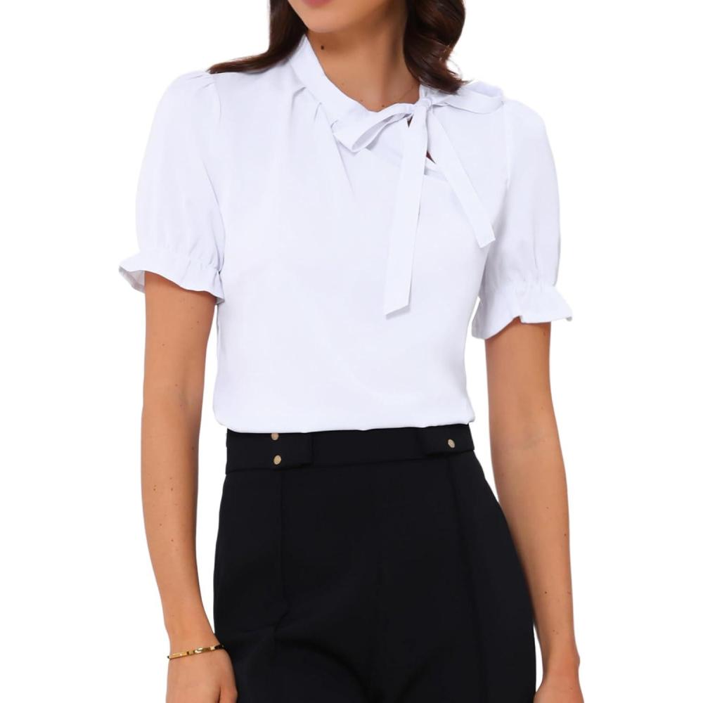 imageAllegra K Womens Bow Tie Neck Tops Elegant Office Short Sleeve BlouseWhite 1