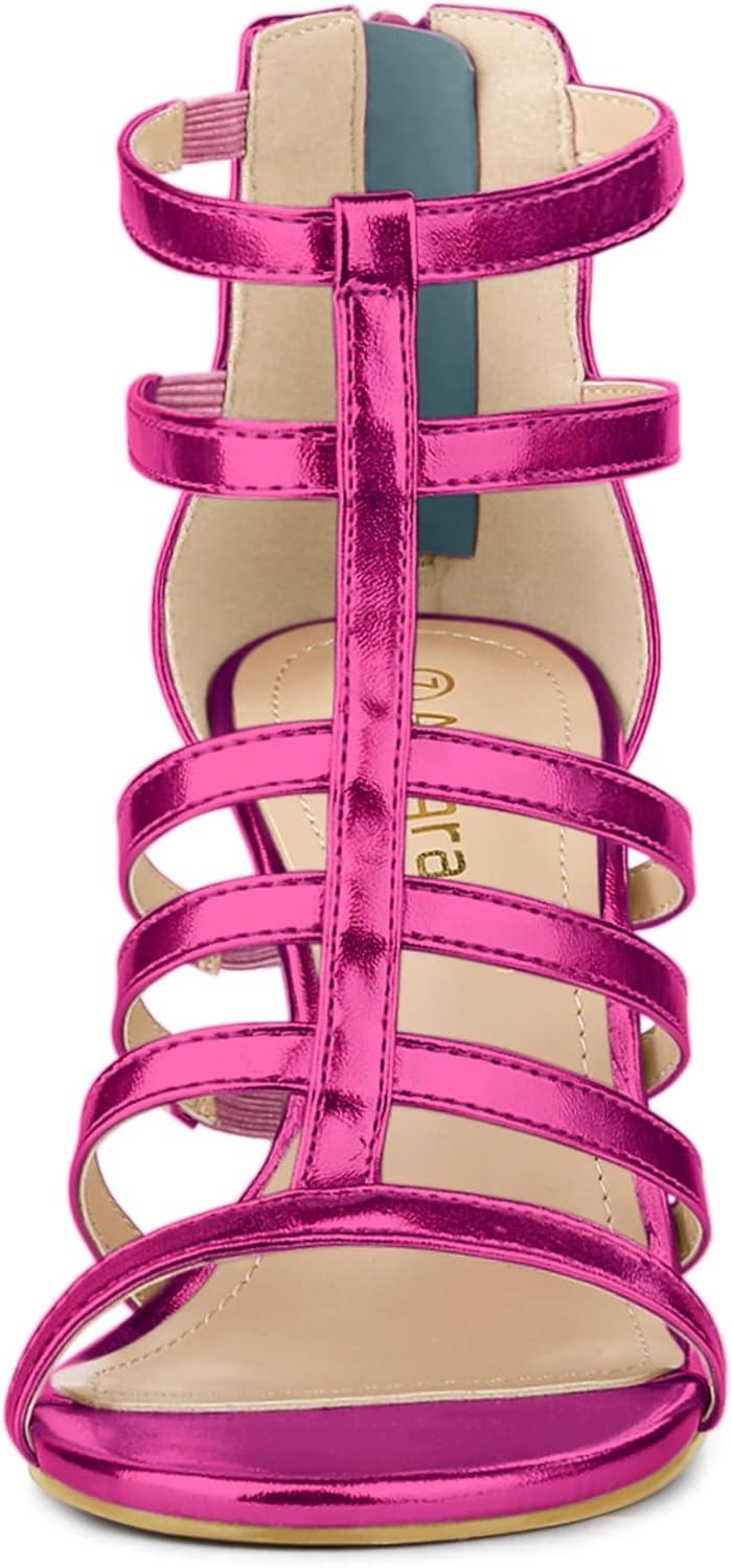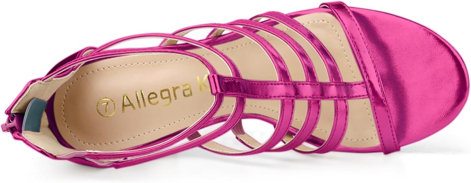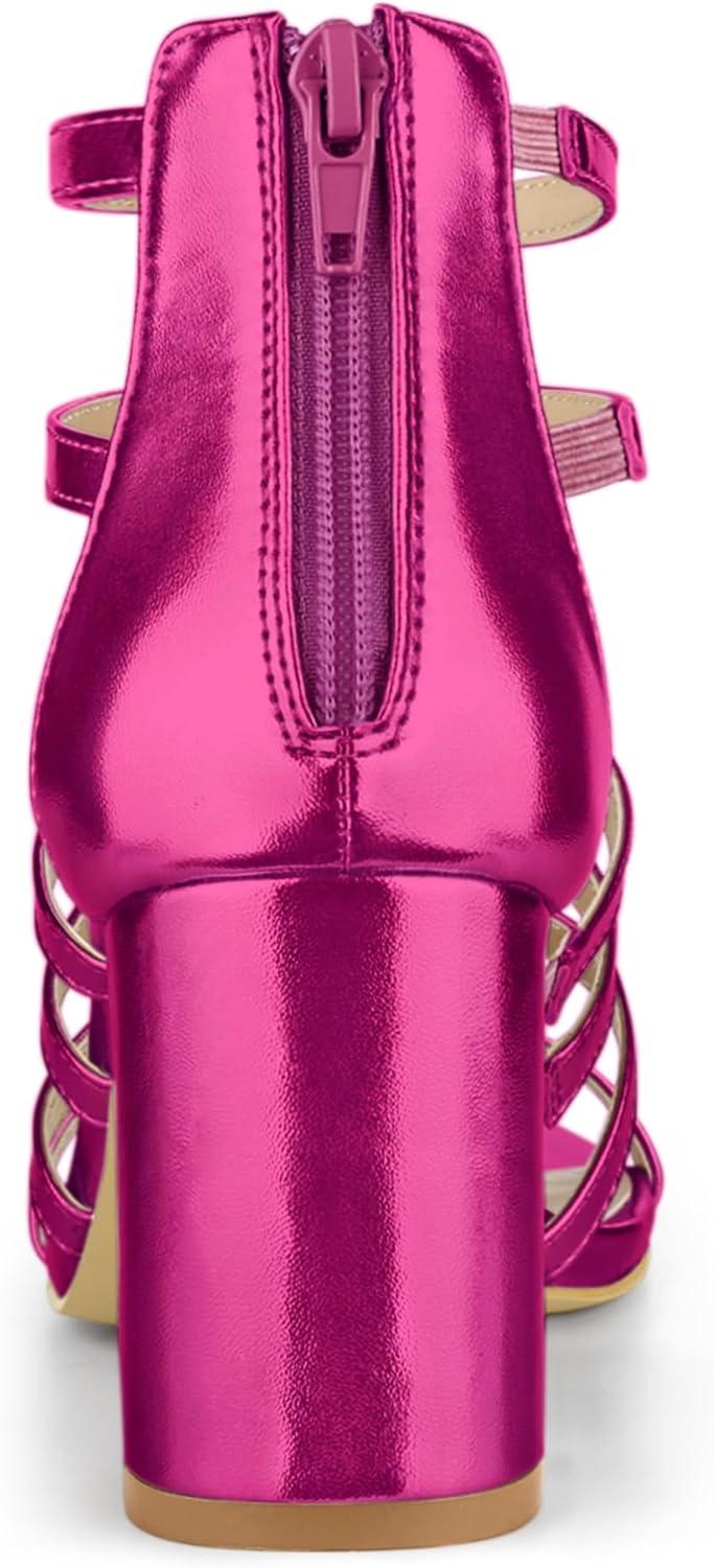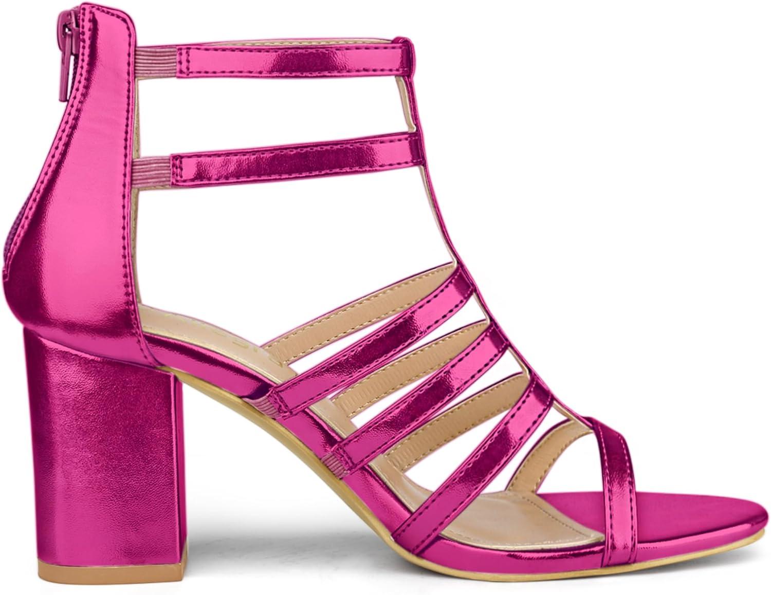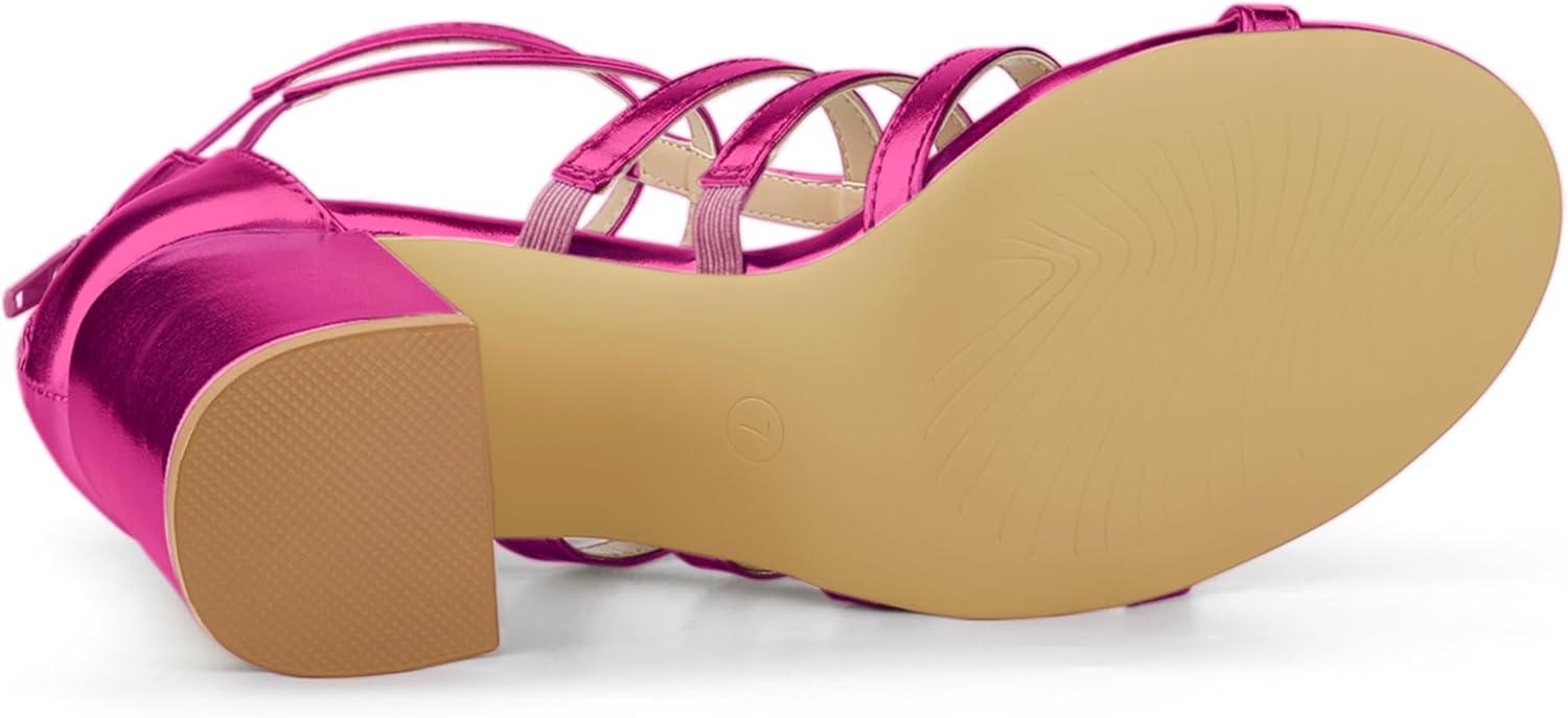Allegra K Women’s Cage Strappy Gladiators Chunky Heels Sandals(Hot Pink)