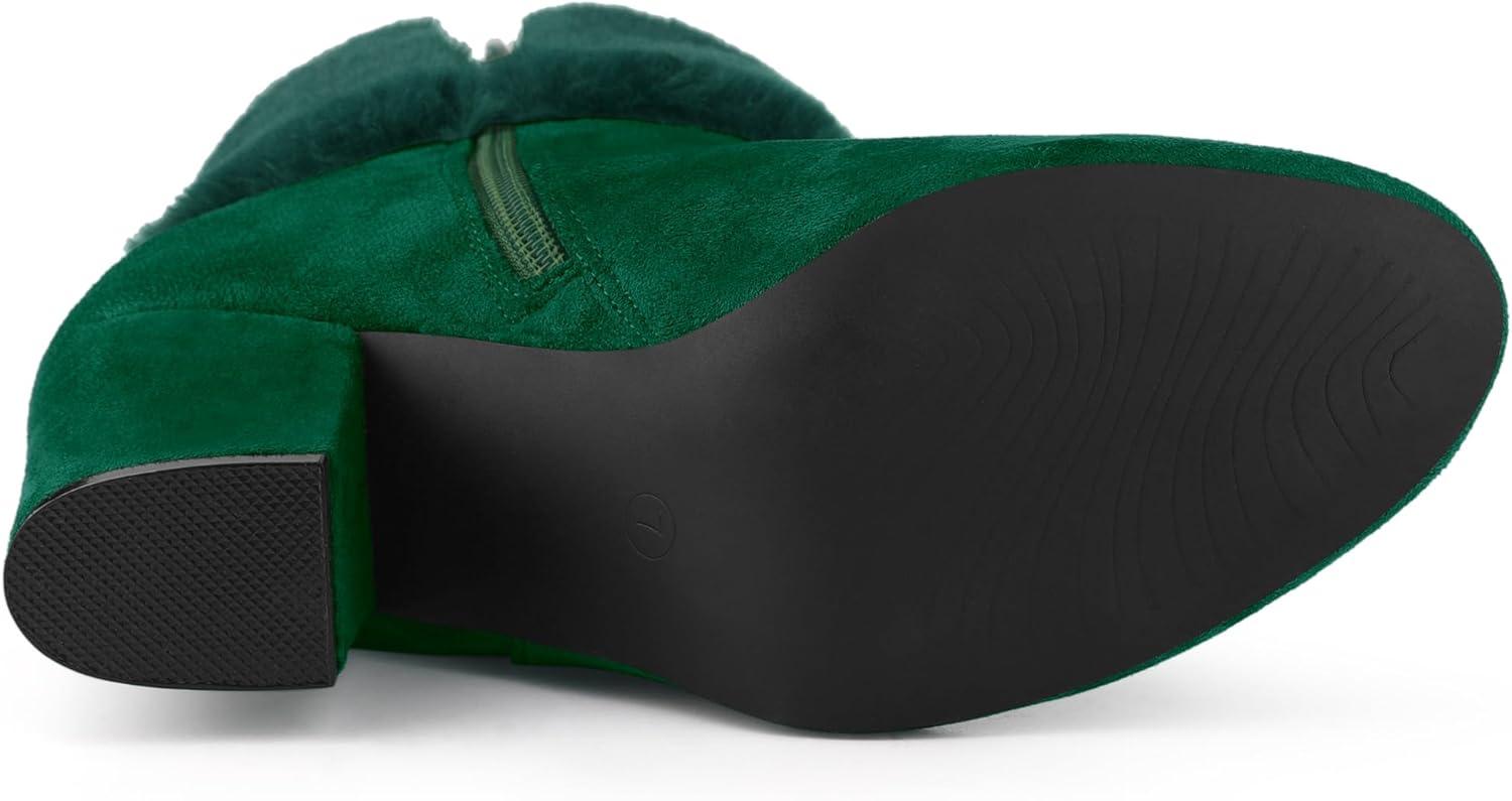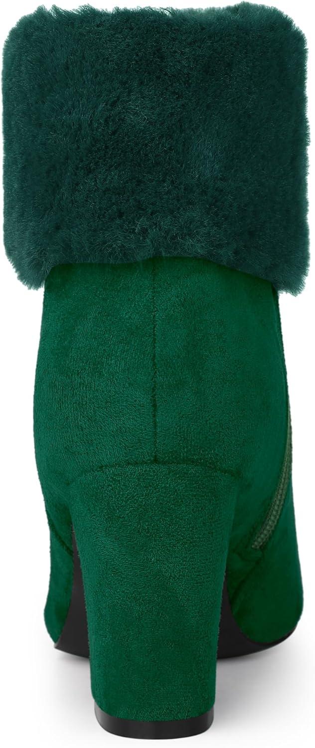 Allegra K Women’s Christmas Faux Fur Chunky Heel Ankle Boots(Green)