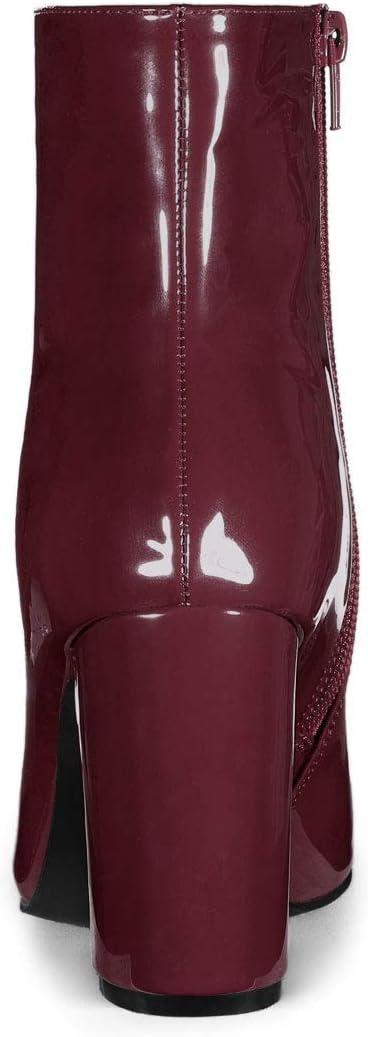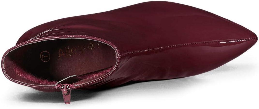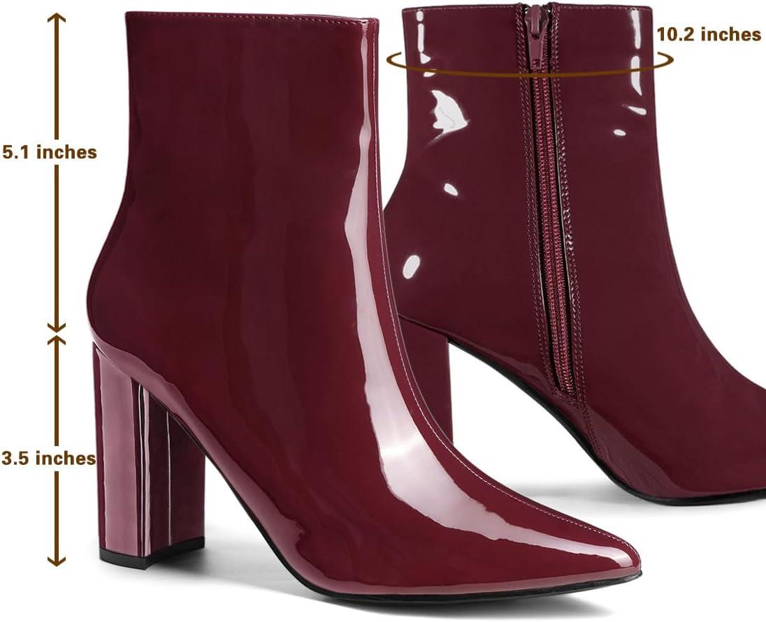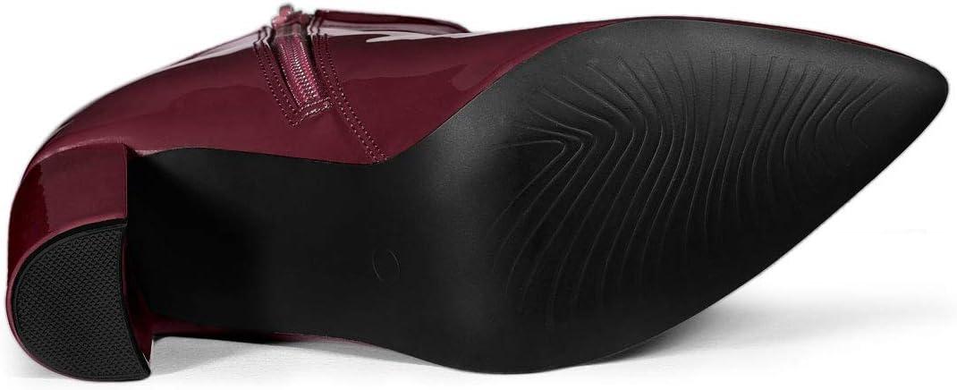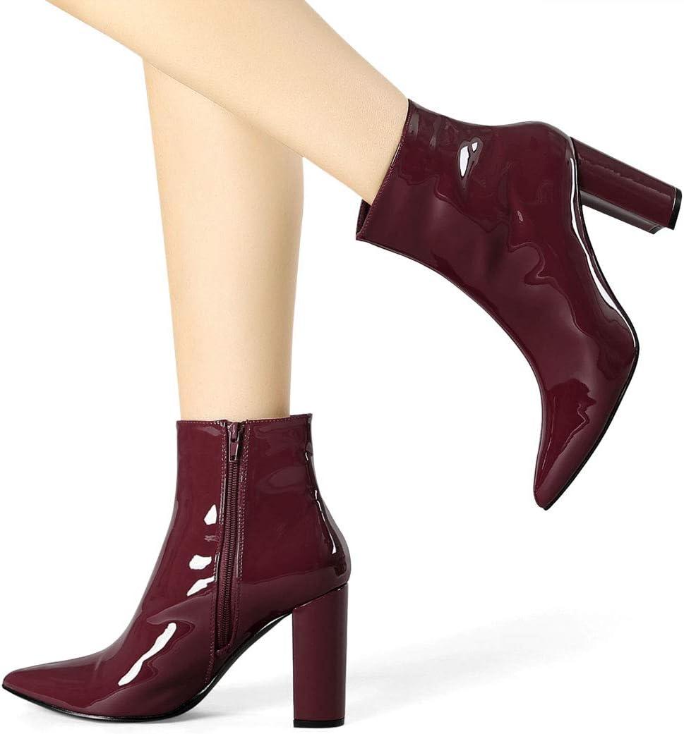 Allegra K Women’s Chunky Heel Pointed Toe Zipper Ankle Boots(Burgundy)